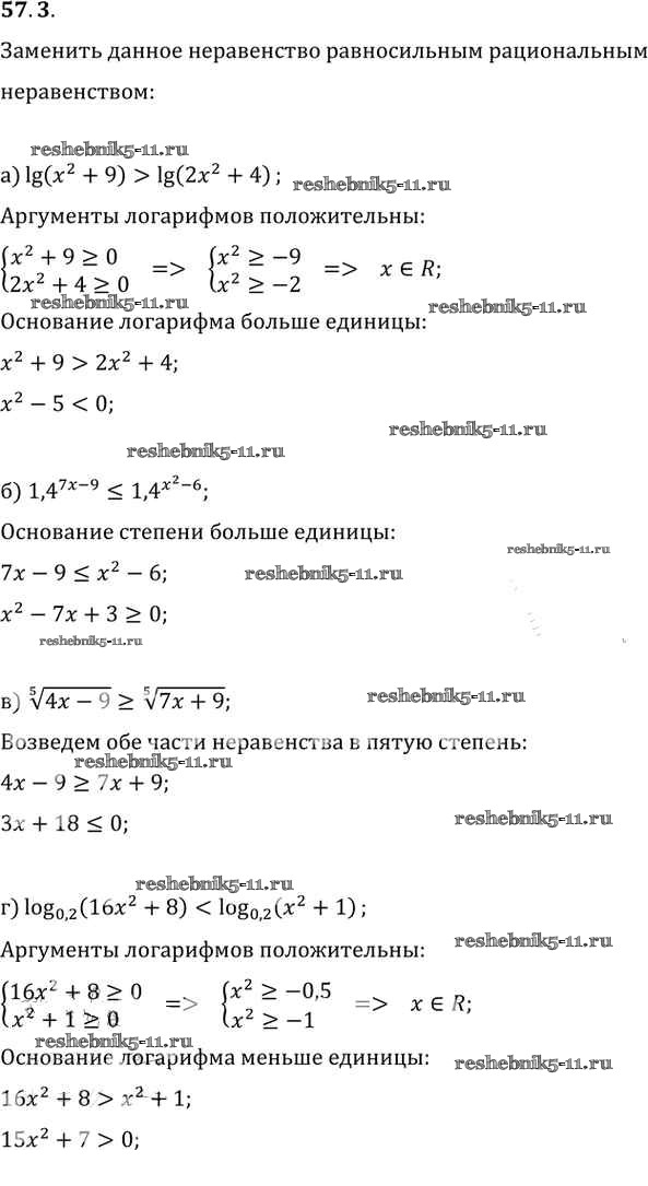 Готовая домашняя работа с ответами по Алгебре за 10, 11 класс Мордкович, Денищева, Корешкова, Мишустина, Семёнов, Тульчинская Задачник Базовый уровень Часть 2 Мнемозина 2015 ФГОС - §57. Решение неравенств с одной переменной 57. 3