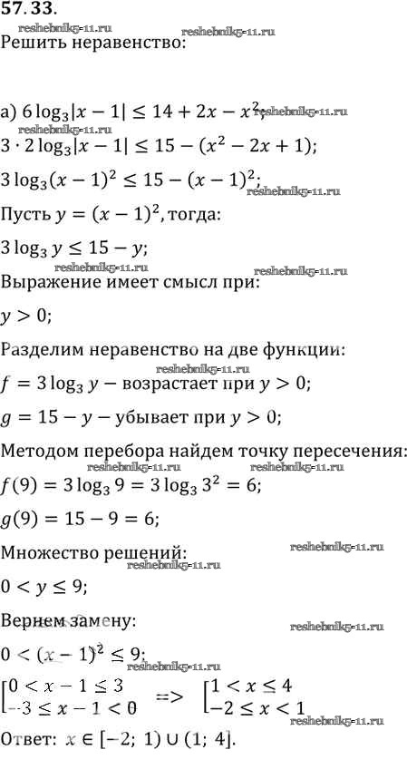 Готовая домашняя работа с ответами по Алгебре за 10, 11 класс Мордкович, Денищева, Корешкова, Мишустина, Семёнов, Тульчинская Задачник Базовый уровень Часть 2 Мнемозина 2015 ФГОС - §57. Решение неравенств с одной переменной 57. 33