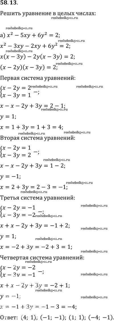 Готовая домашняя работа с ответами по Алгебре за 10, 11 класс Мордкович, Денищева, Корешкова, Мишустина, Семёнов, Тульчинская Задачник Базовый уровень Часть 2 Мнемозина 2015 ФГОС - §58. Уравнения и неравенства с двумя переменным 58. 13
