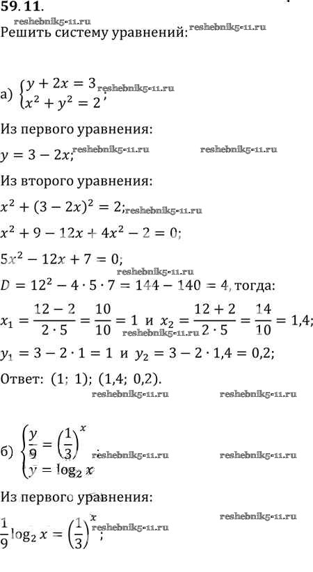 Готовая домашняя работа с ответами по Алгебре за 10, 11 класс Мордкович, Денищева, Корешкова, Мишустина, Семёнов, Тульчинская Задачник Базовый уровень Часть 2 Мнемозина 2015 ФГОС - §59. Системы уравнений 59. 11