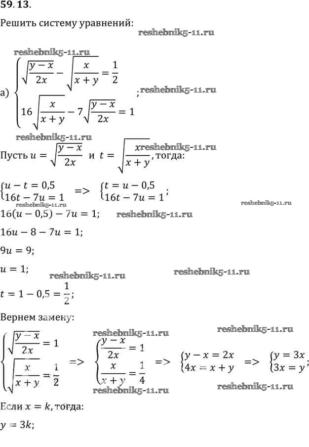 Готовая домашняя работа с ответами по Алгебре за 10, 11 класс Мордкович, Денищева, Корешкова, Мишустина, Семёнов, Тульчинская Задачник Базовый уровень Часть 2 Мнемозина 2015 ФГОС - §59. Системы уравнений 59. 13