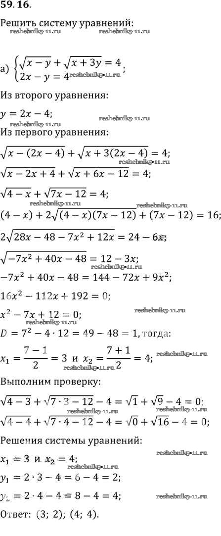 Готовая домашняя работа с ответами по Алгебре за 10, 11 класс Мордкович, Денищева, Корешкова, Мишустина, Семёнов, Тульчинская Задачник Базовый уровень Часть 2 Мнемозина 2015 ФГОС - §59. Системы уравнений 59. 16