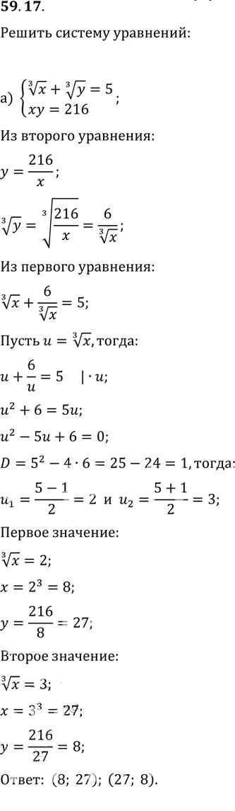 Готовая домашняя работа с ответами по Алгебре за 10, 11 класс Мордкович, Денищева, Корешкова, Мишустина, Семёнов, Тульчинская Задачник Базовый уровень Часть 2 Мнемозина 2015 ФГОС - §59. Системы уравнений 59. 17