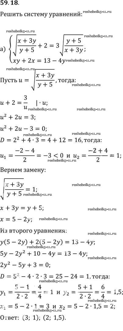 Готовая домашняя работа с ответами по Алгебре за 10, 11 класс Мордкович, Денищева, Корешкова, Мишустина, Семёнов, Тульчинская Задачник Базовый уровень Часть 2 Мнемозина 2015 ФГОС - §59. Системы уравнений 59. 18
