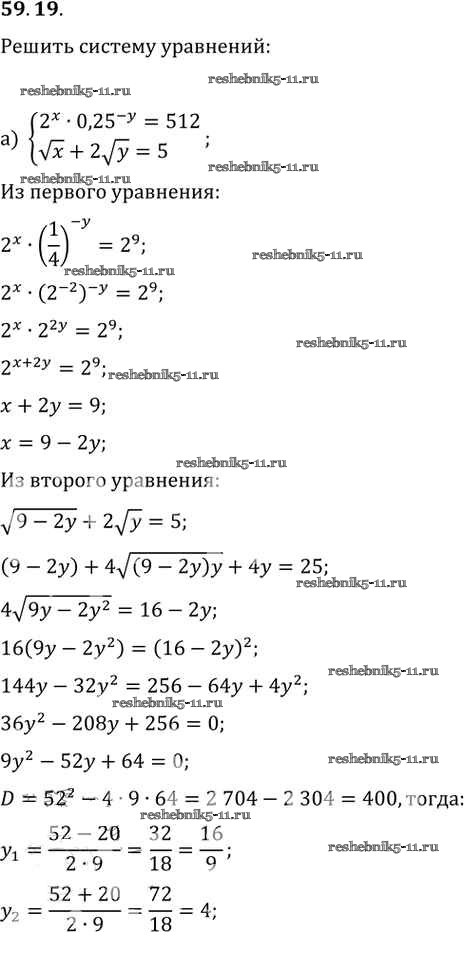 Готовая домашняя работа с ответами по Алгебре за 10, 11 класс Мордкович, Денищева, Корешкова, Мишустина, Семёнов, Тульчинская Задачник Базовый уровень Часть 2 Мнемозина 2015 ФГОС - §59. Системы уравнений 59. 19