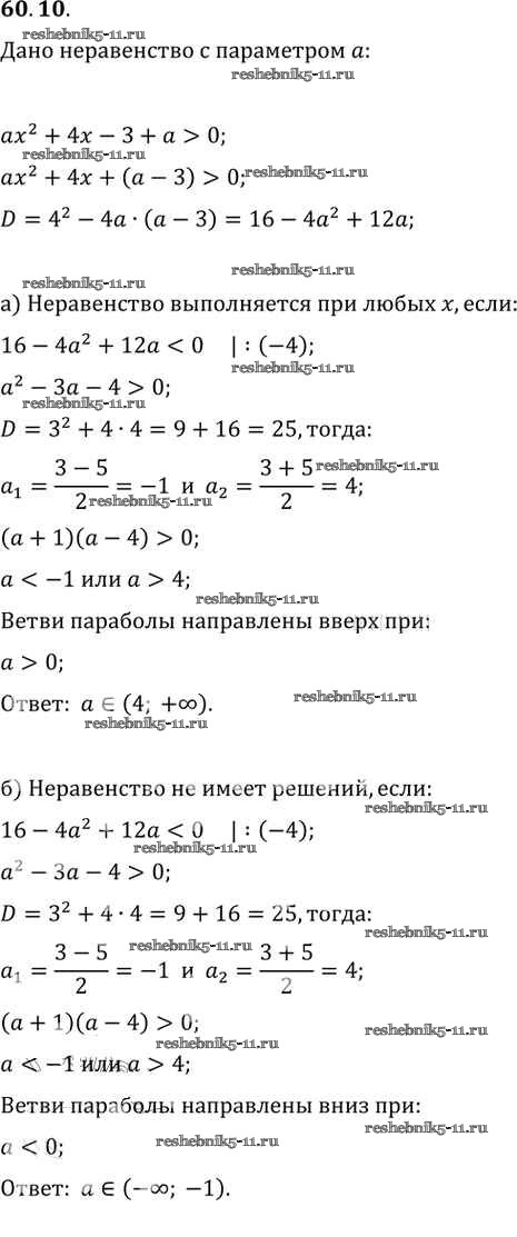 Готовая домашняя работа с ответами по Алгебре за 10, 11 класс Мордкович, Денищева, Корешкова, Мишустина, Семёнов, Тульчинская Задачник Базовый уровень Часть 2 Мнемозина 2015 ФГОС - §60. Задачи с параметрами 60. 10