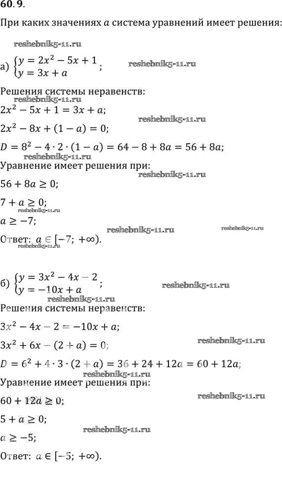 Готовая домашняя работа с ответами по Алгебре за 10, 11 класс Мордкович, Денищева, Корешкова, Мишустина, Семёнов, Тульчинская Задачник Базовый уровень Часть 2 Мнемозина 2015 ФГОС - §60. Задачи с параметрами 60. 9