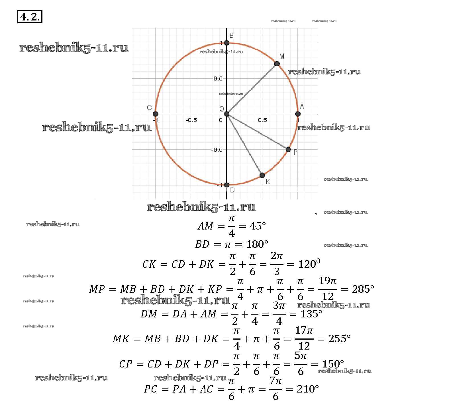 Готовая домашняя работа с ответами по Алгебре за 10, 11 класс Мордкович, Денищева, Корешкова, Мишустина, Семёнов, Тульчинская Задачник Базовый уровень Часть 2 Мнемозина 2015 ФГОС - §4. Числовая окружность 4. 2