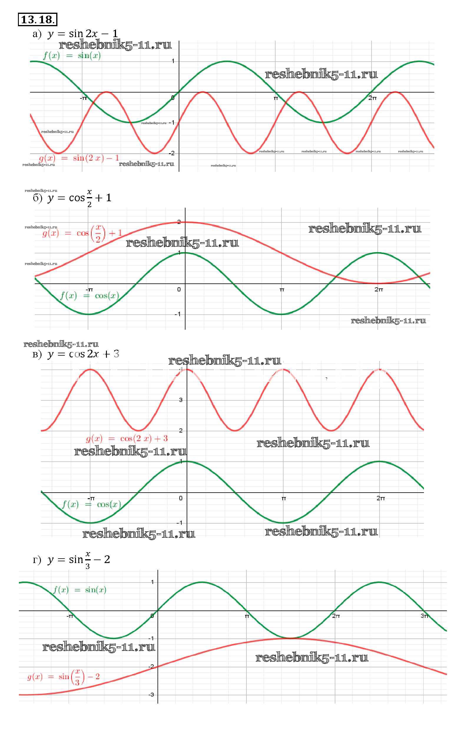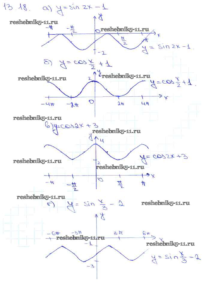 Готовая домашняя работа с ответами по Алгебре за 10, 11 класс Мордкович, Денищева, Корешкова, Мишустина, Семёнов, Тульчинская Задачник Базовый уровень Часть 2 Мнемозина 2015 ФГОС - §13. Преобразование графиков тригонометрических функций 13. 18