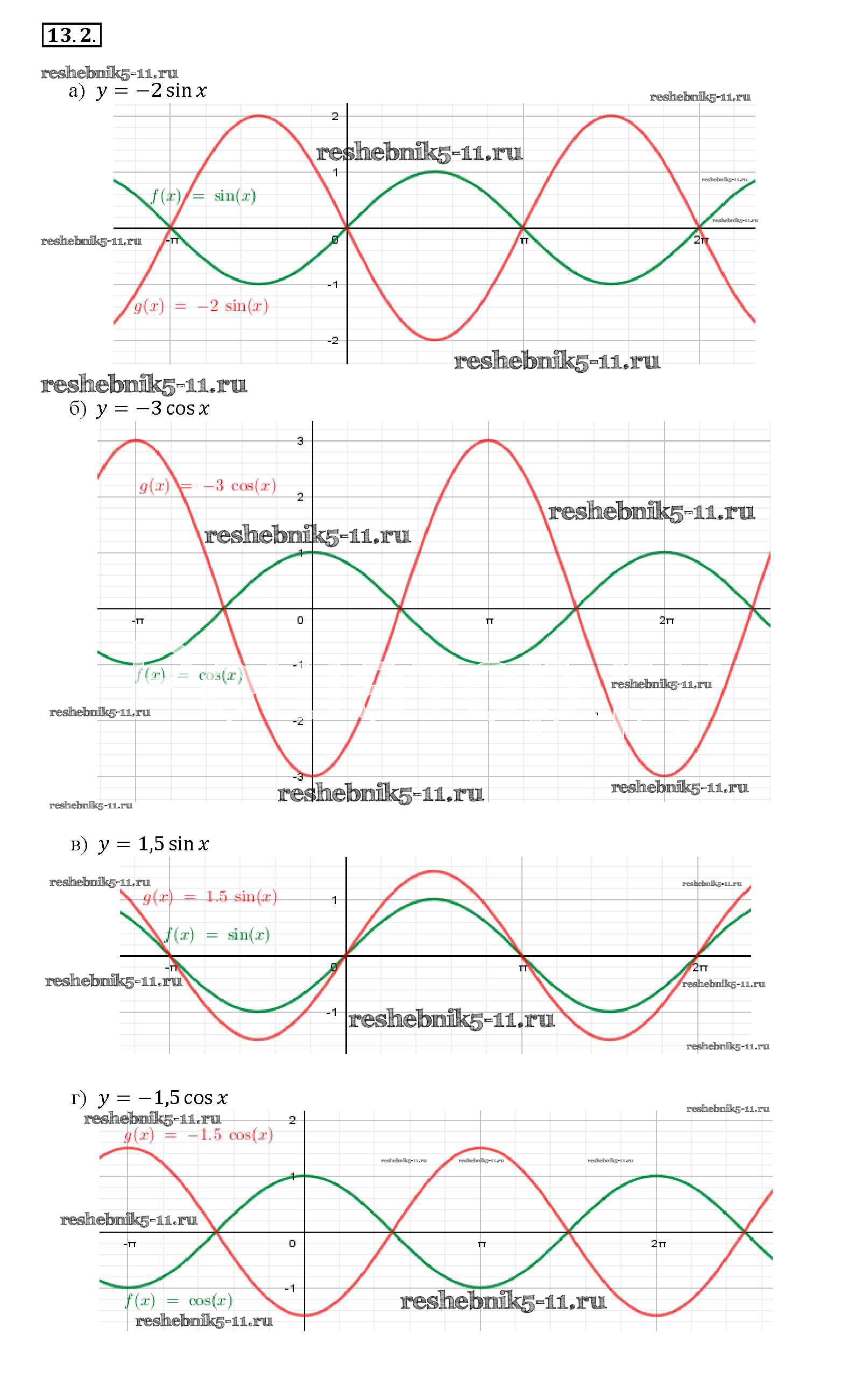 Готовая домашняя работа с ответами по Алгебре за 10, 11 класс Мордкович, Денищева, Корешкова, Мишустина, Семёнов, Тульчинская Задачник Базовый уровень Часть 2 Мнемозина 2015 ФГОС - §13. Преобразование графиков тригонометрических функций 13. 2