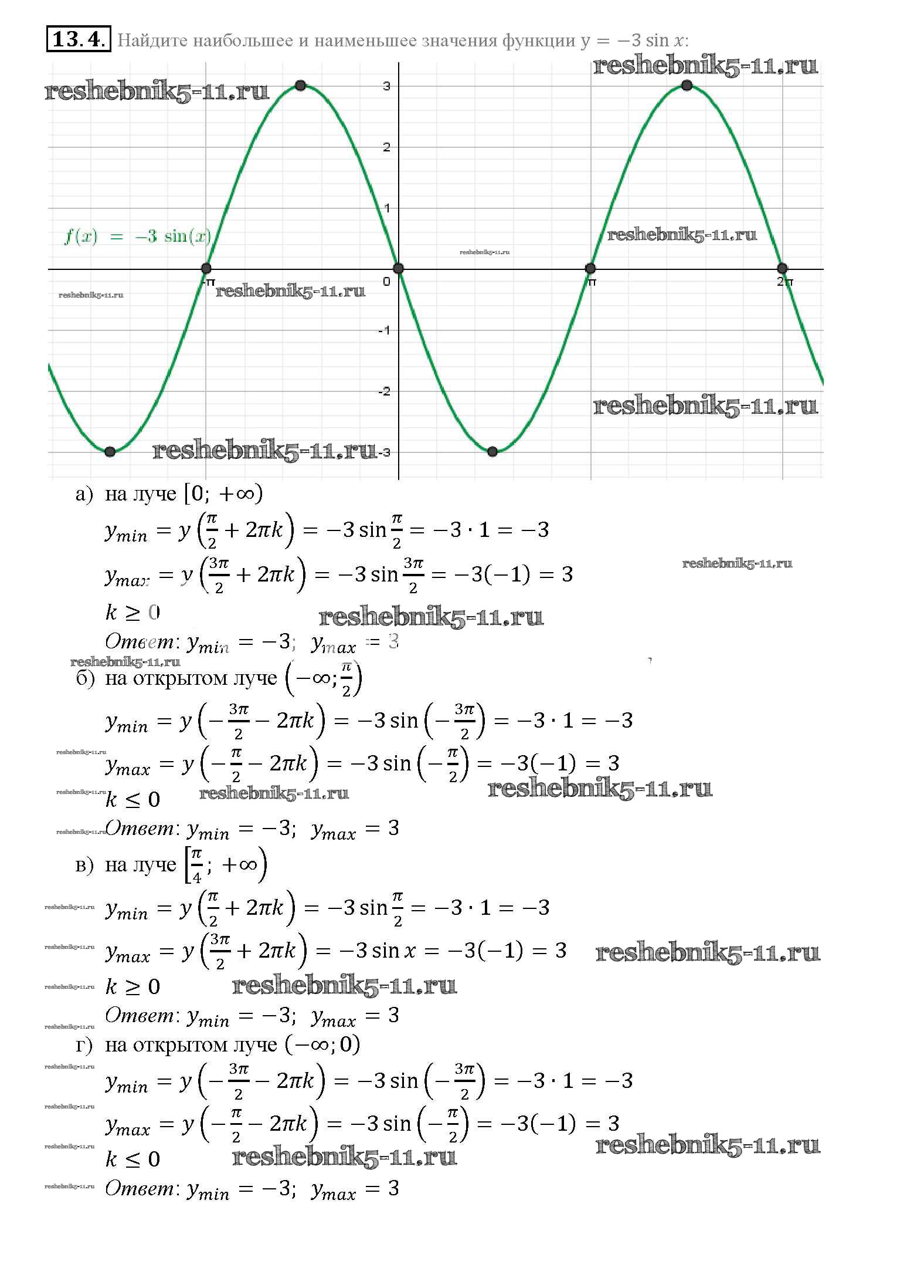 Готовая домашняя работа с ответами по Алгебре за 10, 11 класс Мордкович, Денищева, Корешкова, Мишустина, Семёнов, Тульчинская Задачник Базовый уровень Часть 2 Мнемозина 2015 ФГОС - §13. Преобразование графиков тригонометрических функций 13. 4