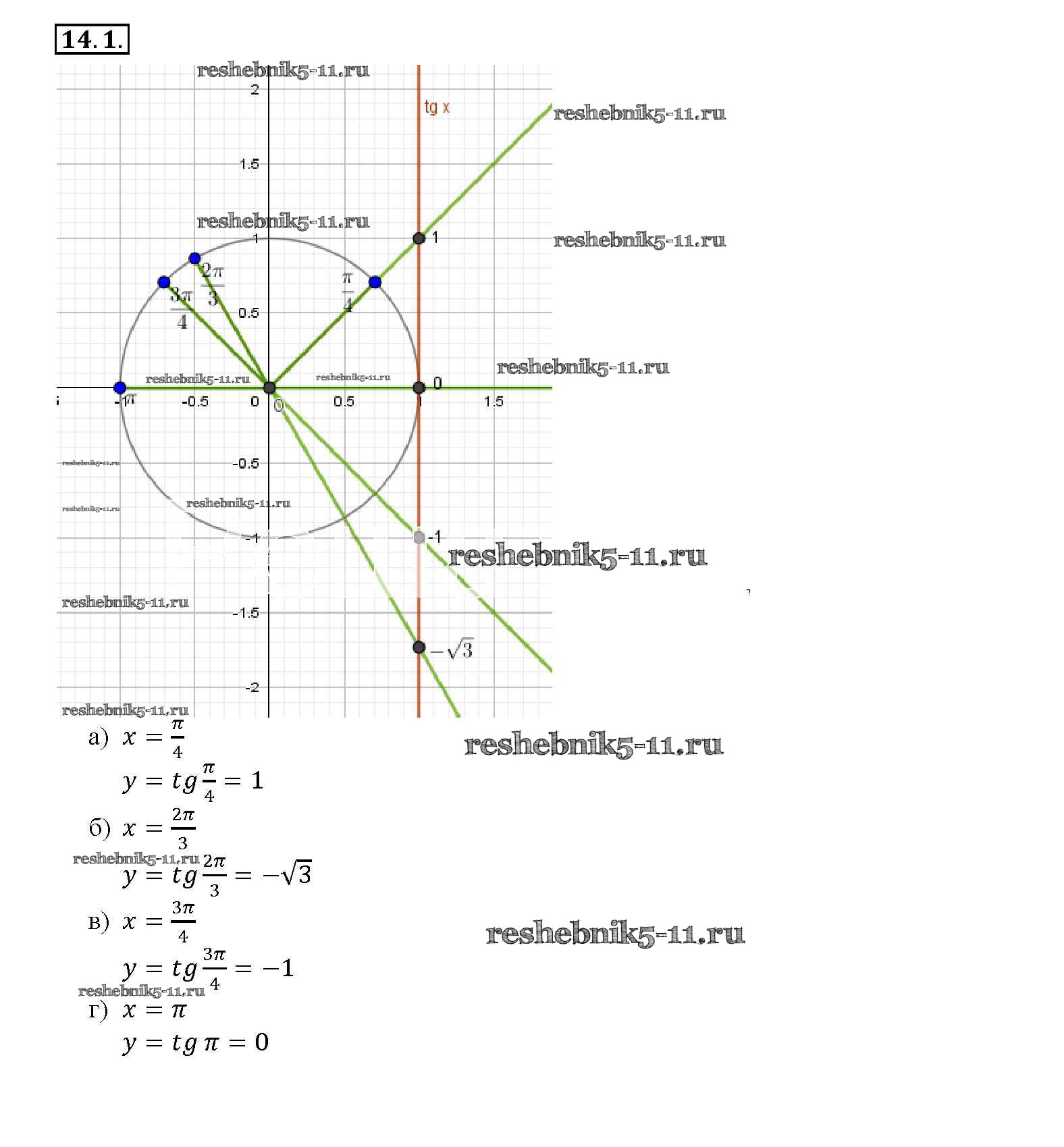 Готовая домашняя работа с ответами по Алгебре за 10, 11 класс Мордкович, Денищева, Корешкова, Мишустина, Семёнов, Тульчинская Задачник Базовый уровень Часть 2 Мнемозина 2015 ФГОС - §14. Функция y = tg x, y = ctg x, их свойства и график 14. 1