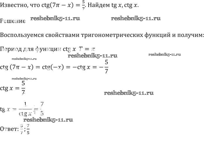 Готовая домашняя работа с ответами по Алгебре за 10, 11 класс Мордкович, Денищева, Корешкова, Мишустина, Семёнов, Тульчинская Задачник Базовый уровень Часть 2 Мнемозина 2015 ФГОС - §14. Функция y = tg x, y = ctg x, их свойства и график 14. 11
