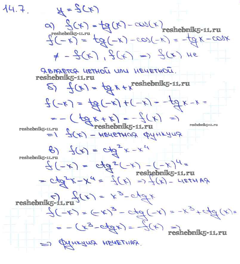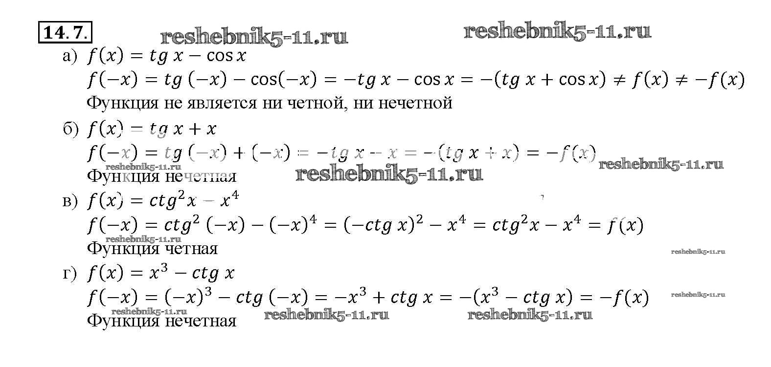 Готовая домашняя работа с ответами по Алгебре за 10, 11 класс Мордкович, Денищева, Корешкова, Мишустина, Семёнов, Тульчинская Задачник Базовый уровень Часть 2 Мнемозина 2015 ФГОС - §14. Функция y = tg x, y = ctg x, их свойства и график 14. 7