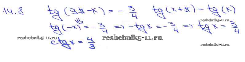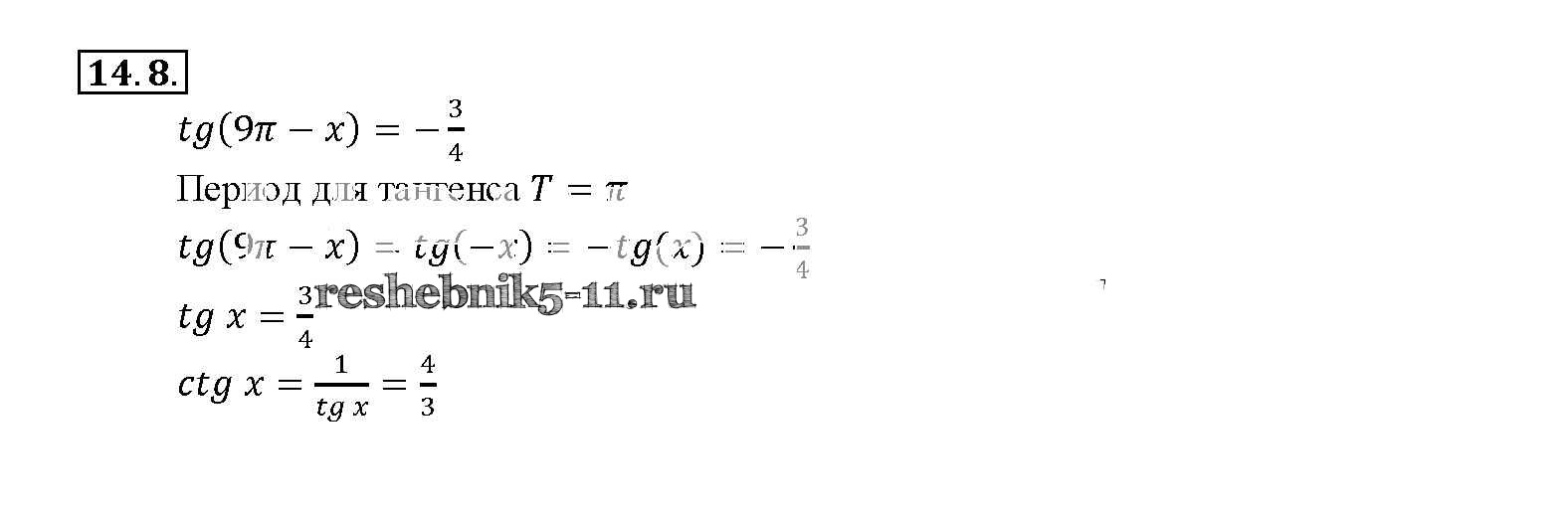 Готовая домашняя работа с ответами по Алгебре за 10, 11 класс Мордкович, Денищева, Корешкова, Мишустина, Семёнов, Тульчинская Задачник Базовый уровень Часть 2 Мнемозина 2015 ФГОС - §14. Функция y = tg x, y = ctg x, их свойства и график 14. 8