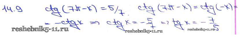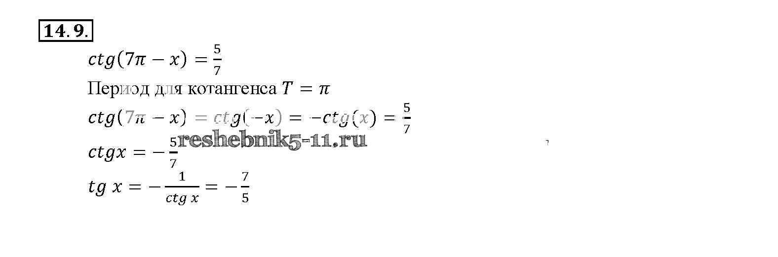 Готовая домашняя работа с ответами по Алгебре за 10, 11 класс Мордкович, Денищева, Корешкова, Мишустина, Семёнов, Тульчинская Задачник Базовый уровень Часть 2 Мнемозина 2015 ФГОС - §14. Функция y = tg x, y = ctg x, их свойства и график 14. 9