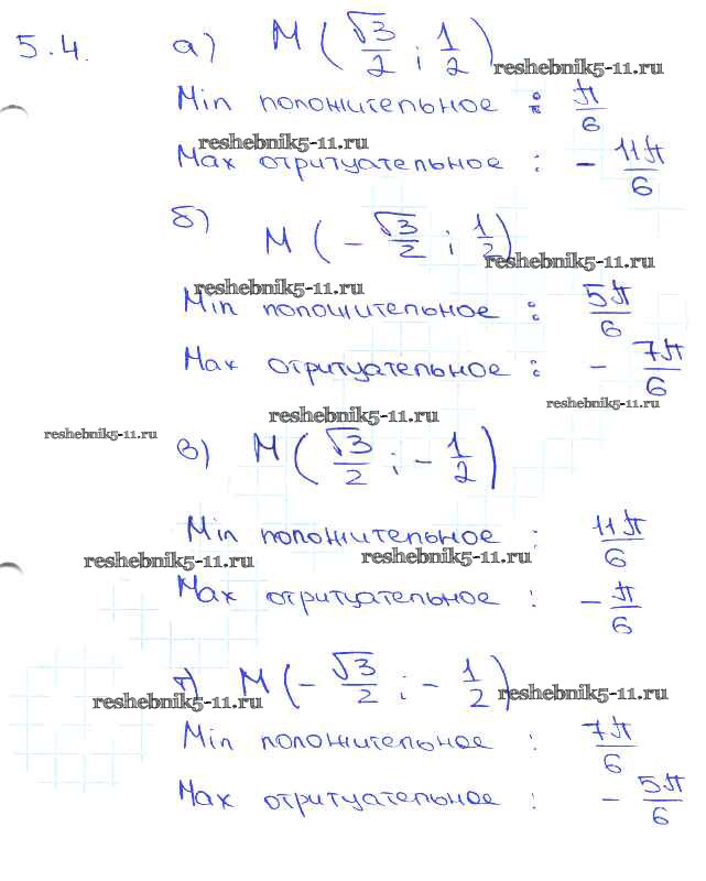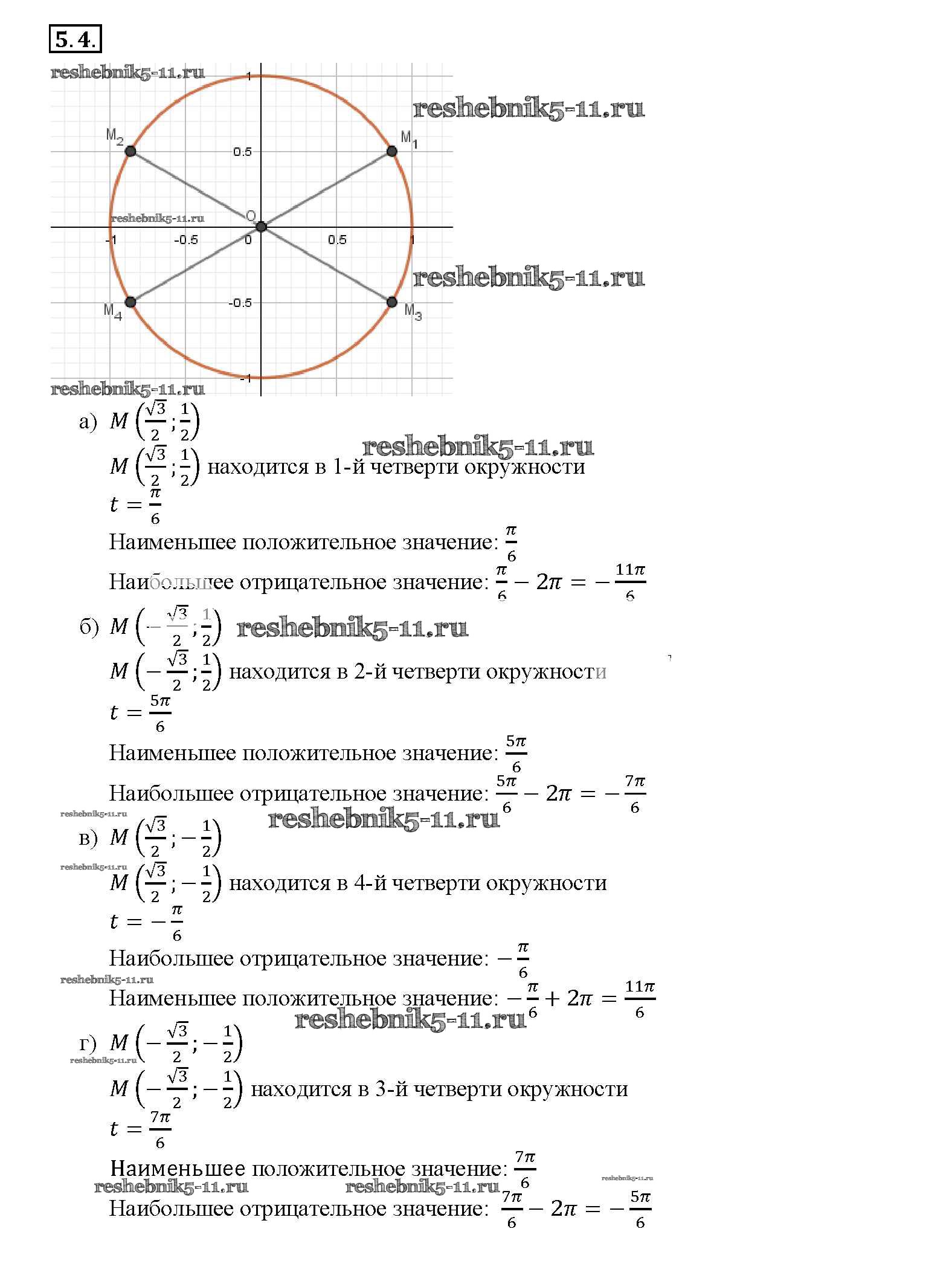 Готовая домашняя работа с ответами по Алгебре за 10, 11 класс Мордкович, Денищева, Корешкова, Мишустина, Семёнов, Тульчинская Задачник Базовый уровень Часть 2 Мнемозина 2015 ФГОС - §5. Числовая окружность на координатной плоскости 5. 4