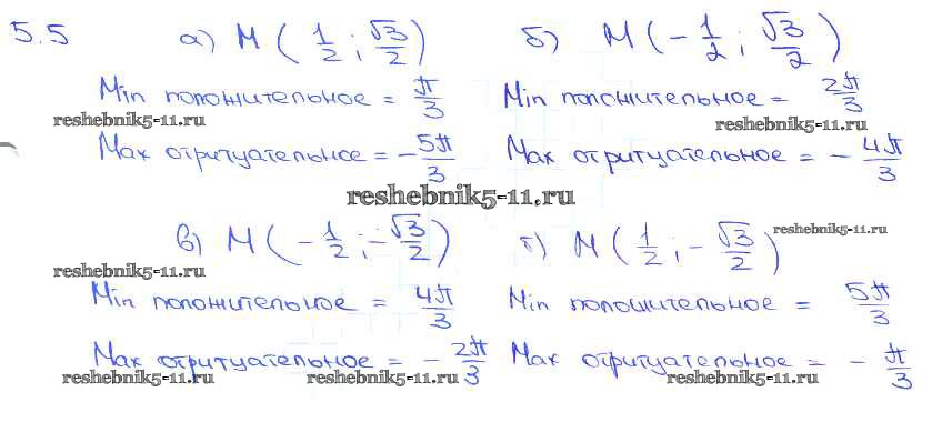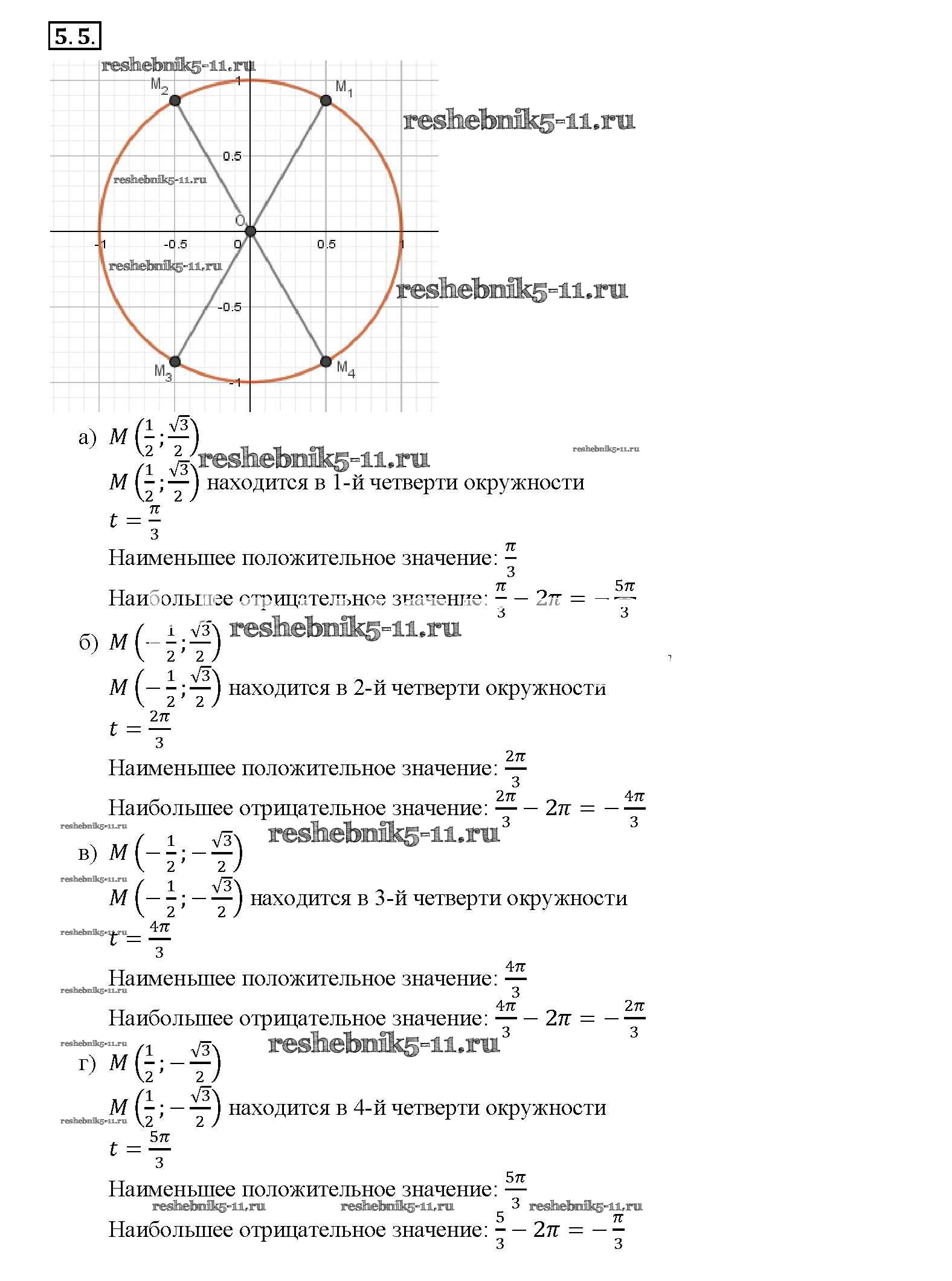 Готовая домашняя работа с ответами по Алгебре за 10, 11 класс Мордкович, Денищева, Корешкова, Мишустина, Семёнов, Тульчинская Задачник Базовый уровень Часть 2 Мнемозина 2015 ФГОС - §5. Числовая окружность на координатной плоскости 5. 5