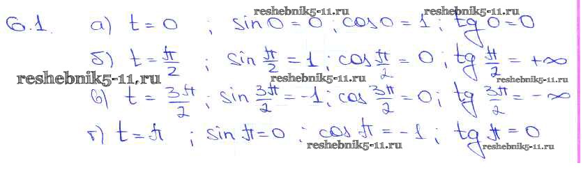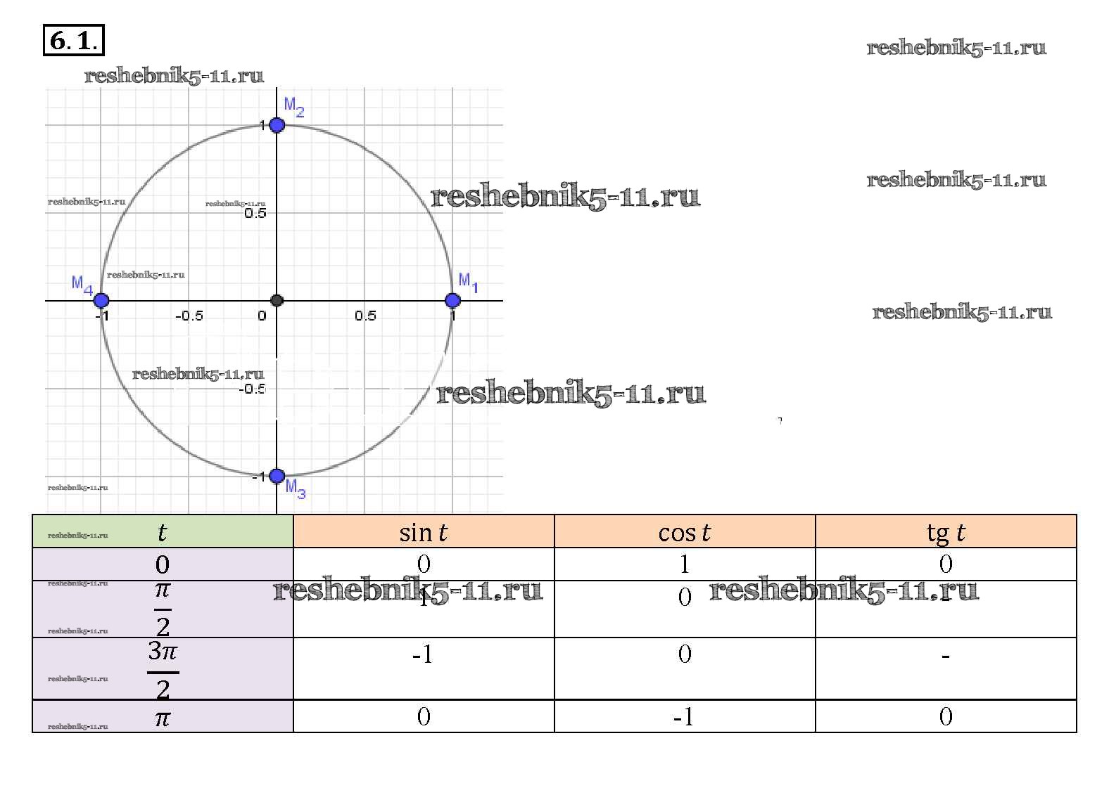 Готовая домашняя работа с ответами по Алгебре за 10, 11 класс Мордкович, Денищева, Корешкова, Мишустина, Семёнов, Тульчинская Задачник Базовый уровень Часть 2 Мнемозина 2015 ФГОС - §6. Синус и косинус. Тангенс и катангенс 6. 1