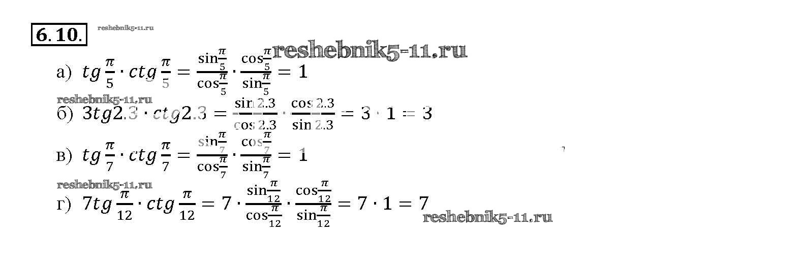 Готовая домашняя работа с ответами по Алгебре за 10, 11 класс Мордкович, Денищева, Корешкова, Мишустина, Семёнов, Тульчинская Задачник Базовый уровень Часть 2 Мнемозина 2015 ФГОС - §6. Синус и косинус. Тангенс и катангенс 6. 10