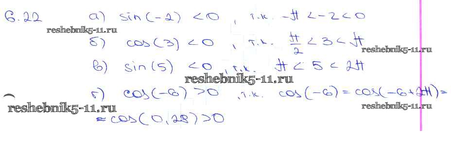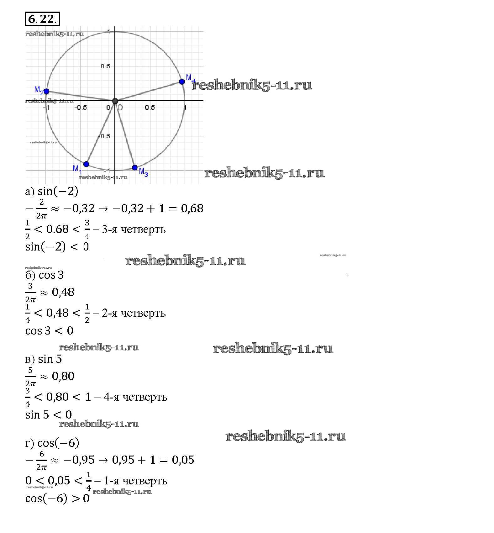 Готовая домашняя работа с ответами по Алгебре за 10, 11 класс Мордкович, Денищева, Корешкова, Мишустина, Семёнов, Тульчинская Задачник Базовый уровень Часть 2 Мнемозина 2015 ФГОС - §6. Синус и косинус. Тангенс и катангенс 6. 22