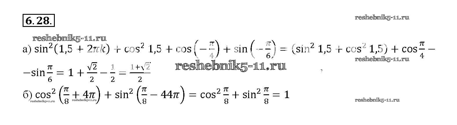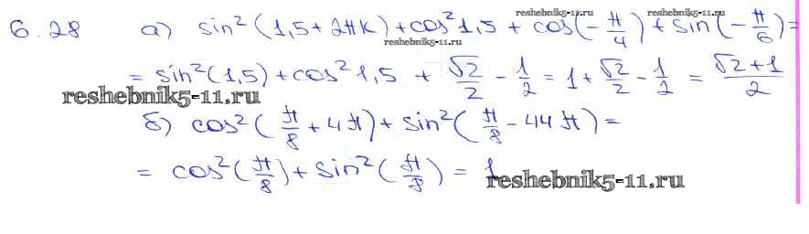 Готовая домашняя работа с ответами по Алгебре за 10, 11 класс Мордкович, Денищева, Корешкова, Мишустина, Семёнов, Тульчинская Задачник Базовый уровень Часть 2 Мнемозина 2015 ФГОС - §6. Синус и косинус. Тангенс и катангенс 6. 28