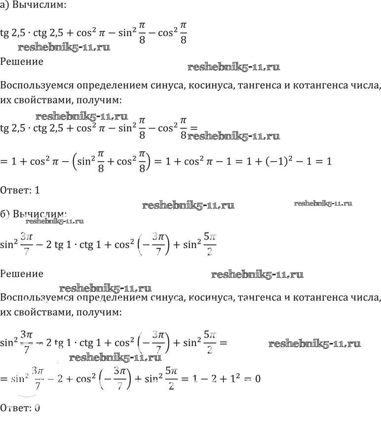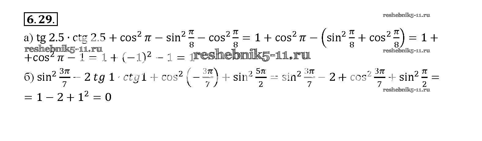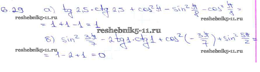 Готовая домашняя работа с ответами по Алгебре за 10, 11 класс Мордкович, Денищева, Корешкова, Мишустина, Семёнов, Тульчинская Задачник Базовый уровень Часть 2 Мнемозина 2015 ФГОС - §6. Синус и косинус. Тангенс и катангенс 6. 29