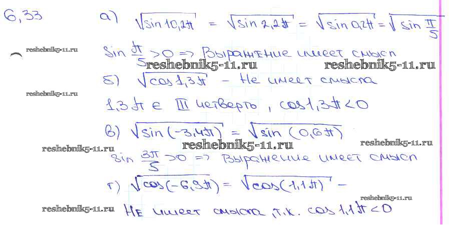 Готовая домашняя работа с ответами по Алгебре за 10, 11 класс Мордкович, Денищева, Корешкова, Мишустина, Семёнов, Тульчинская Задачник Базовый уровень Часть 2 Мнемозина 2015 ФГОС - §6. Синус и косинус. Тангенс и катангенс 6. 33
