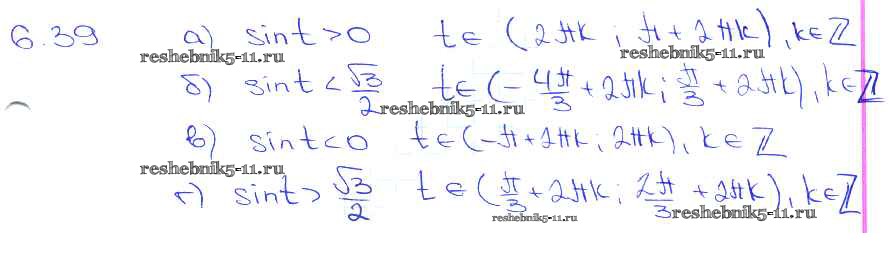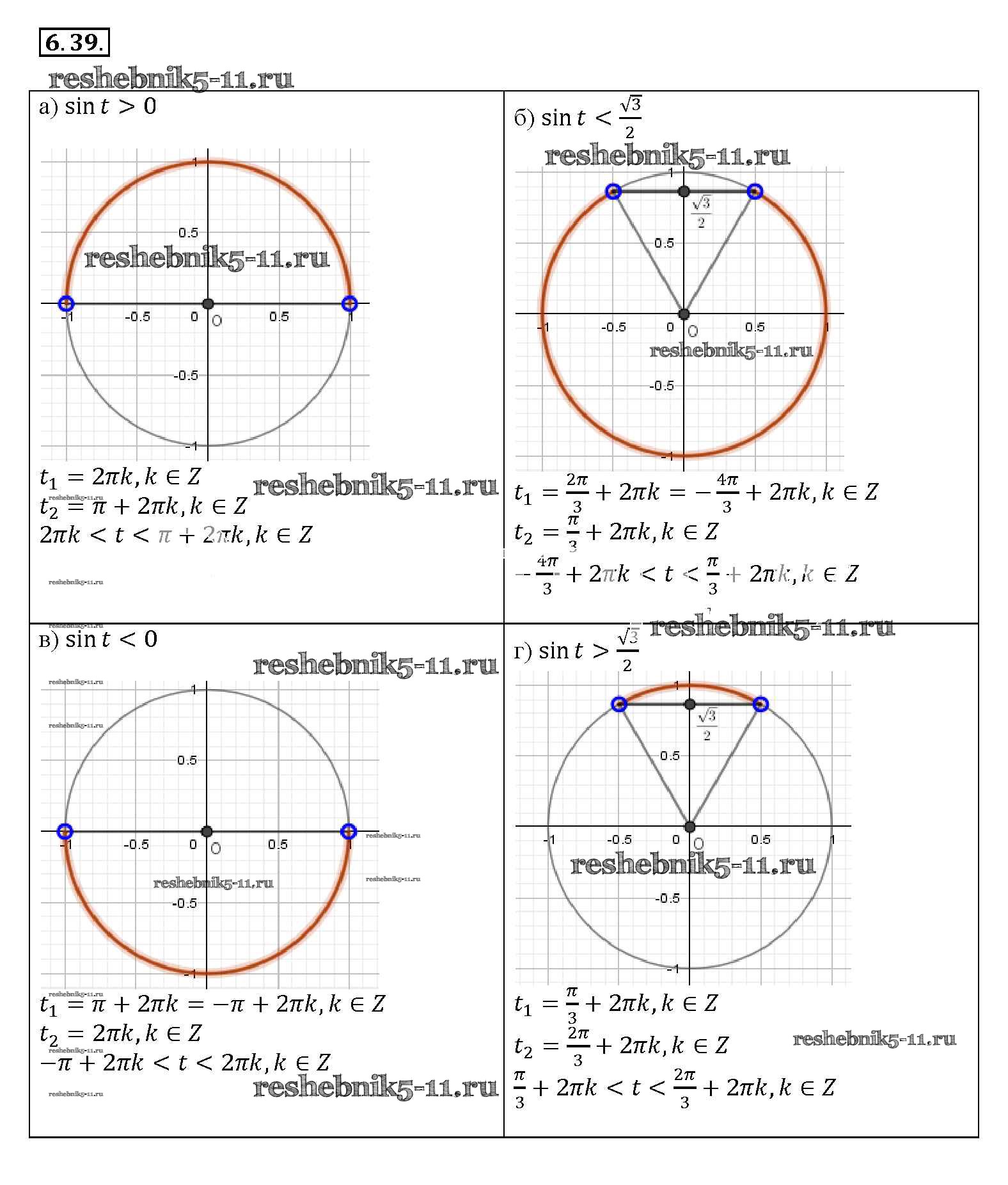 Готовая домашняя работа с ответами по Алгебре за 10, 11 класс Мордкович, Денищева, Корешкова, Мишустина, Семёнов, Тульчинская Задачник Базовый уровень Часть 2 Мнемозина 2015 ФГОС - §6. Синус и косинус. Тангенс и катангенс 6. 39