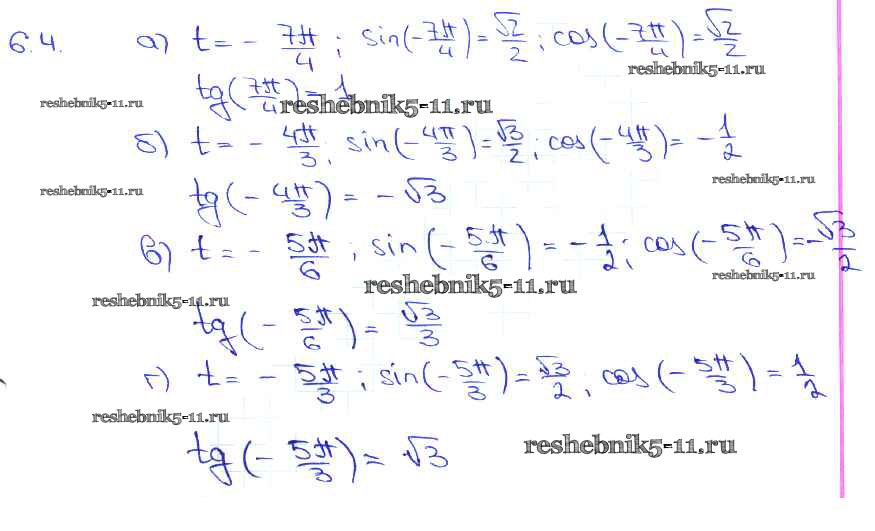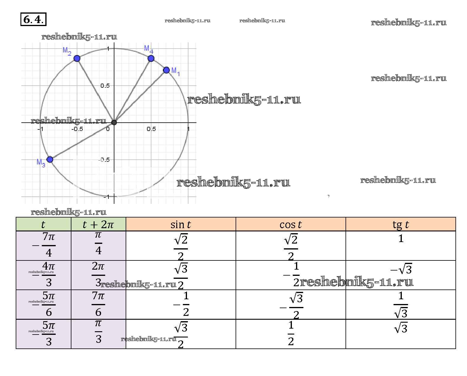 Готовая домашняя работа с ответами по Алгебре за 10, 11 класс Мордкович, Денищева, Корешкова, Мишустина, Семёнов, Тульчинская Задачник Базовый уровень Часть 2 Мнемозина 2015 ФГОС - §6. Синус и косинус. Тангенс и катангенс 6. 4