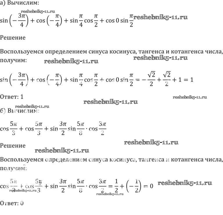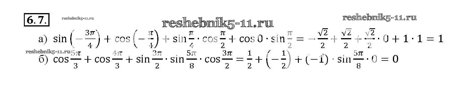 Готовая домашняя работа с ответами по Алгебре за 10, 11 класс Мордкович, Денищева, Корешкова, Мишустина, Семёнов, Тульчинская Задачник Базовый уровень Часть 2 Мнемозина 2015 ФГОС - §6. Синус и косинус. Тангенс и катангенс 6. 7