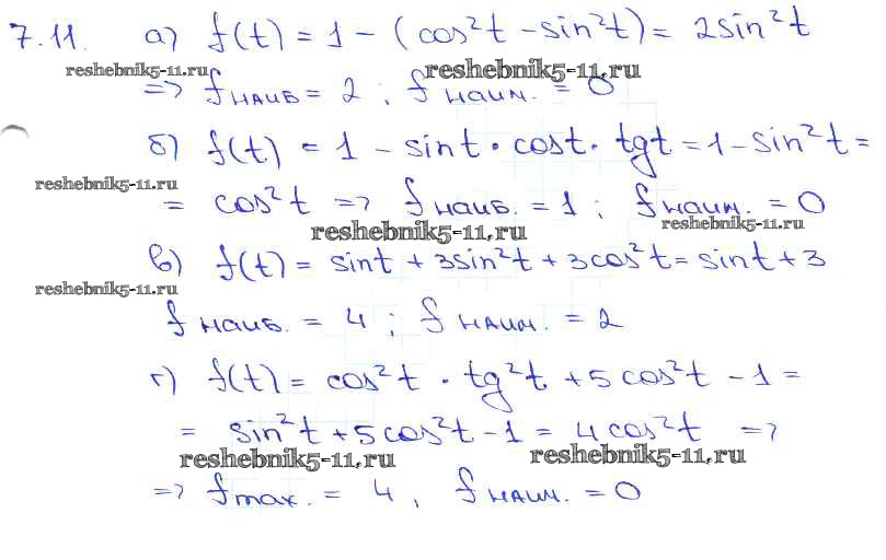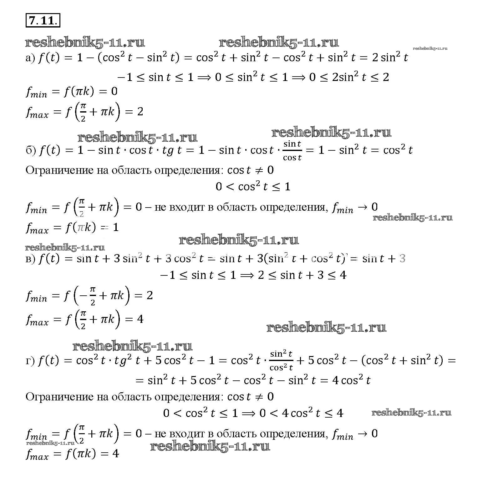 Готовая домашняя работа с ответами по Алгебре за 10, 11 класс Мордкович, Денищева, Корешкова, Мишустина, Семёнов, Тульчинская Задачник Базовый уровень Часть 2 Мнемозина 2015 ФГОС - §7. Тригонометрические функции числового аргумента 7. 11