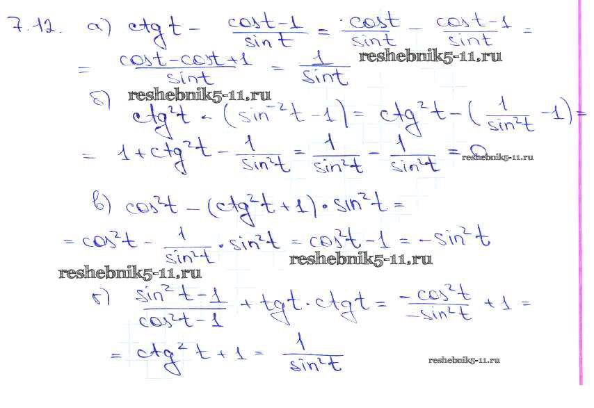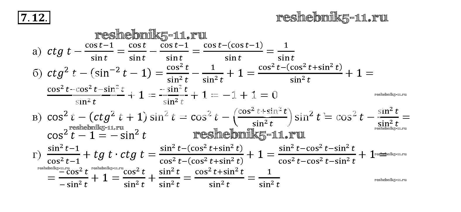 Готовая домашняя работа с ответами по Алгебре за 10, 11 класс Мордкович, Денищева, Корешкова, Мишустина, Семёнов, Тульчинская Задачник Базовый уровень Часть 2 Мнемозина 2015 ФГОС - §7. Тригонометрические функции числового аргумента 7. 12
