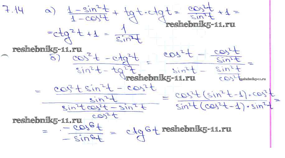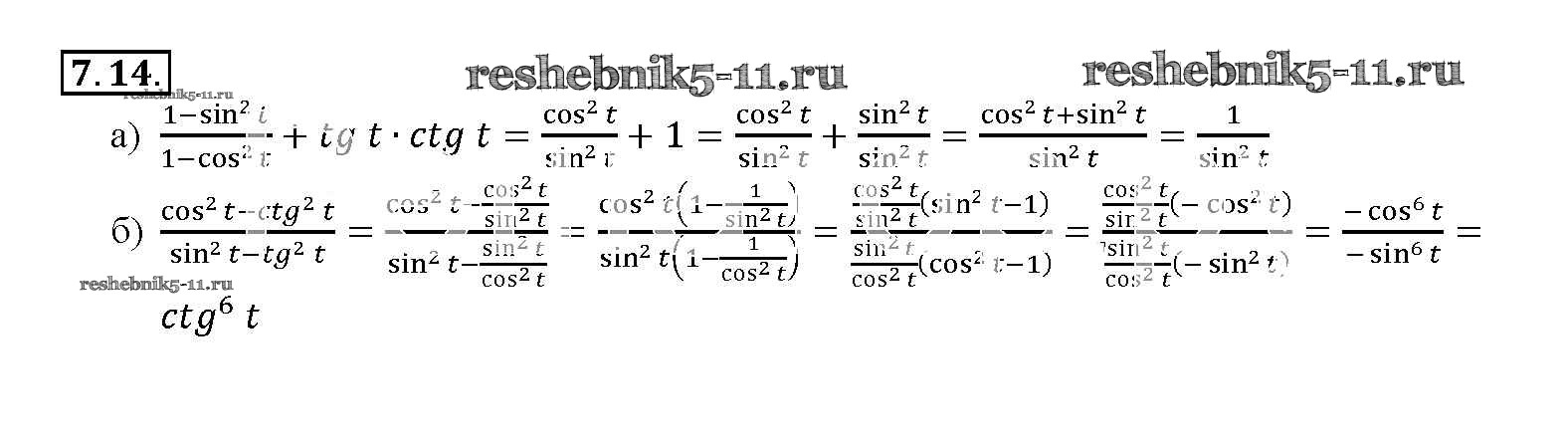 Готовая домашняя работа с ответами по Алгебре за 10, 11 класс Мордкович, Денищева, Корешкова, Мишустина, Семёнов, Тульчинская Задачник Базовый уровень Часть 2 Мнемозина 2015 ФГОС - §7. Тригонометрические функции числового аргумента 7. 14