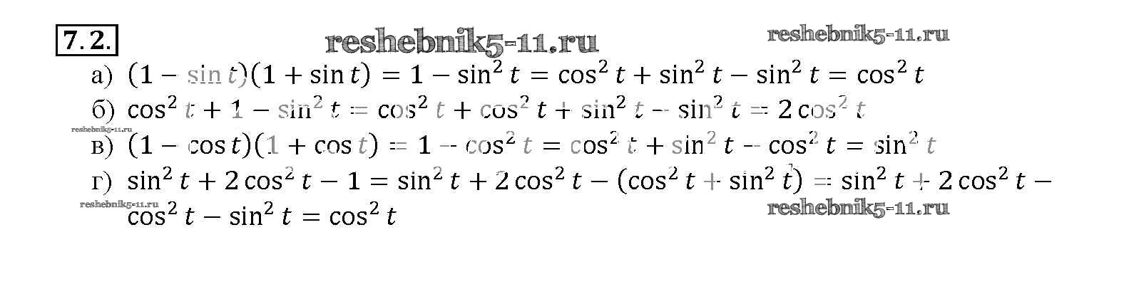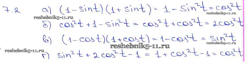 Готовая домашняя работа с ответами по Алгебре за 10, 11 класс Мордкович, Денищева, Корешкова, Мишустина, Семёнов, Тульчинская Задачник Базовый уровень Часть 2 Мнемозина 2015 ФГОС - §7. Тригонометрические функции числового аргумента 7. 2