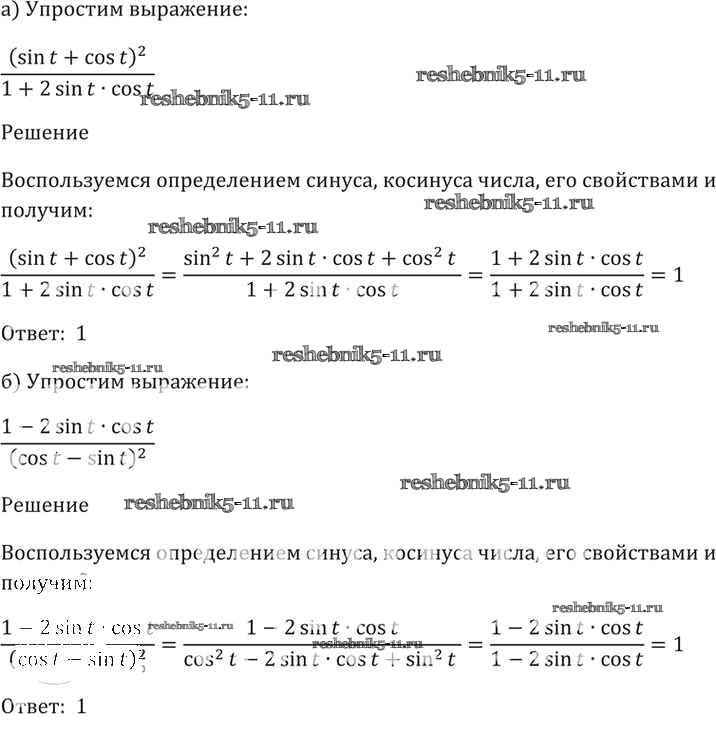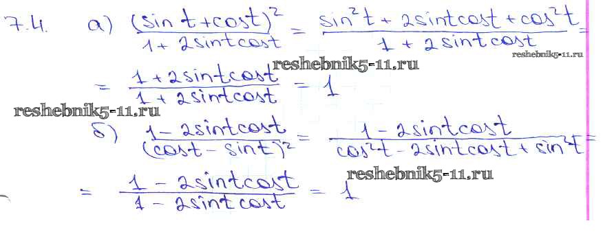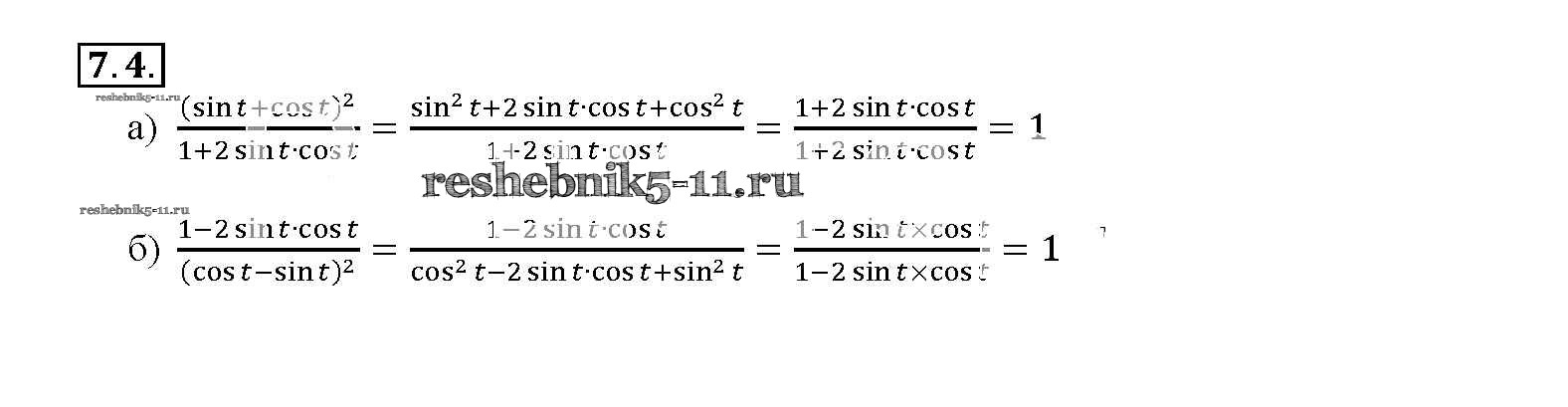Готовая домашняя работа с ответами по Алгебре за 10, 11 класс Мордкович, Денищева, Корешкова, Мишустина, Семёнов, Тульчинская Задачник Базовый уровень Часть 2 Мнемозина 2015 ФГОС - §7. Тригонометрические функции числового аргумента 7. 4