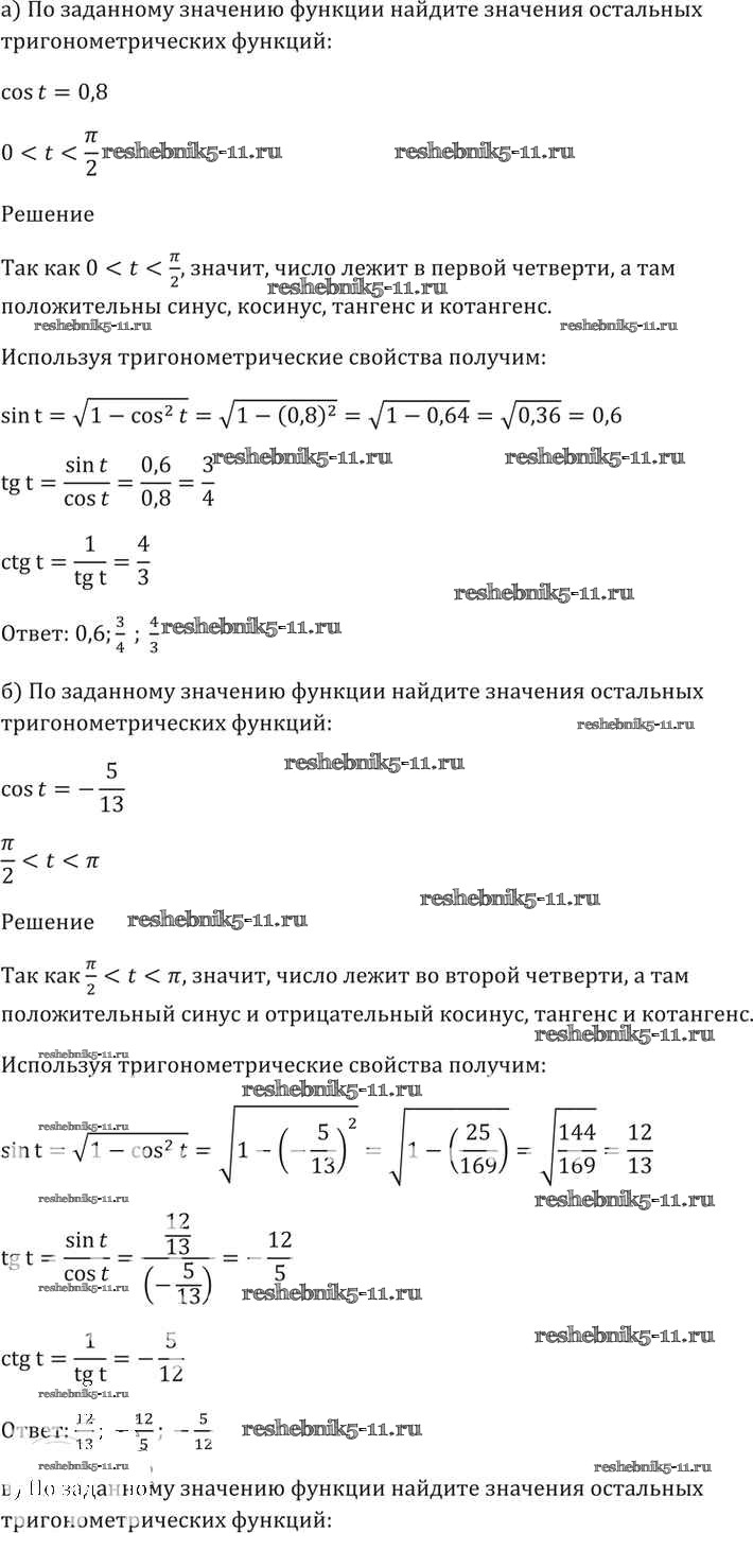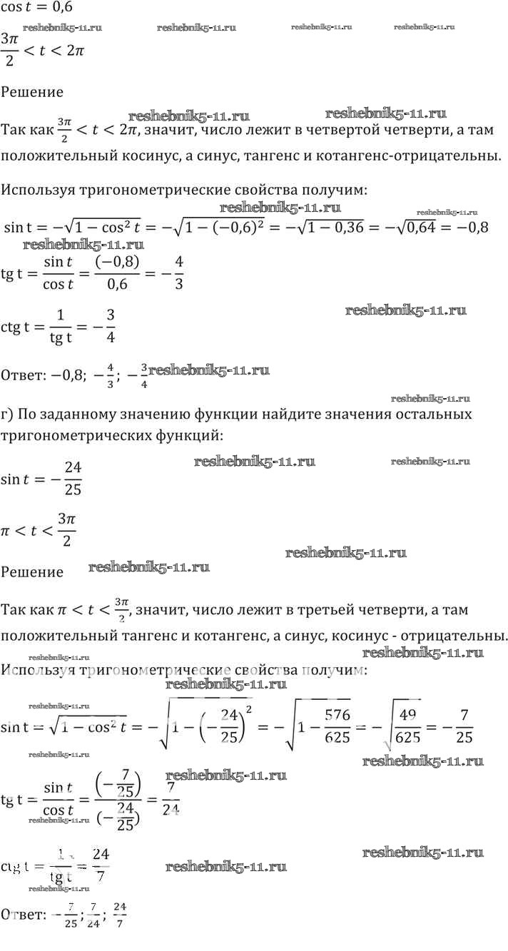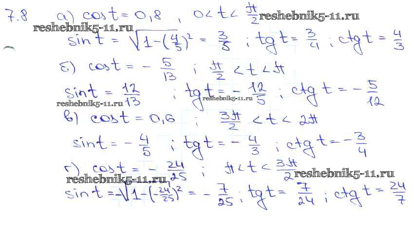 Готовая домашняя работа с ответами по Алгебре за 10, 11 класс Мордкович, Денищева, Корешкова, Мишустина, Семёнов, Тульчинская Задачник Базовый уровень Часть 2 Мнемозина 2015 ФГОС - §7. Тригонометрические функции числового аргумента 7. 8