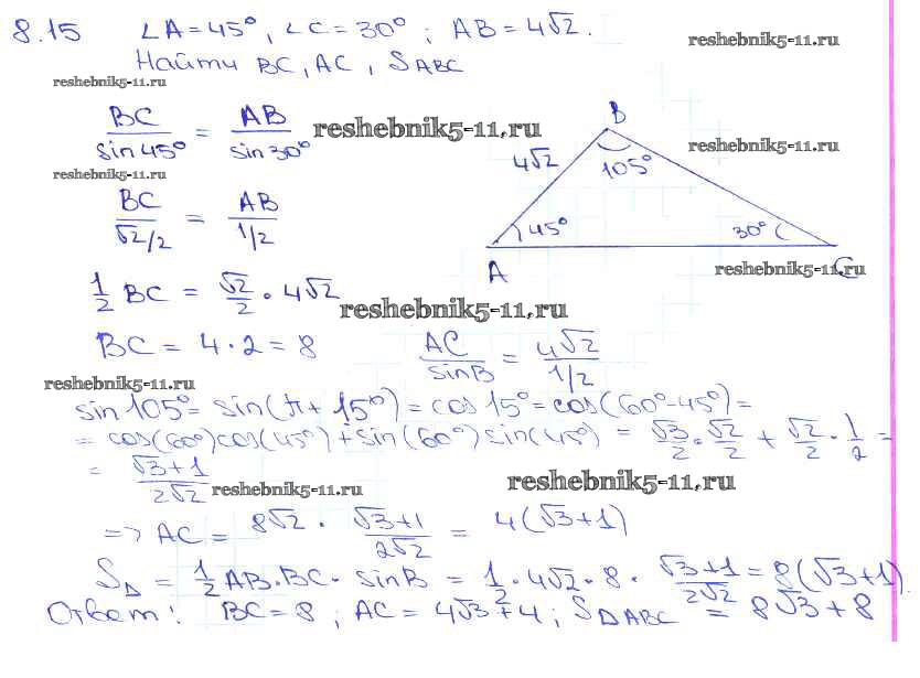 Готовая домашняя работа с ответами по Алгебре за 10, 11 класс Мордкович, Денищева, Корешкова, Мишустина, Семёнов, Тульчинская Задачник Базовый уровень Часть 2 Мнемозина 2015 ФГОС - §8. Тригонометрические функции углового аргумента 8. 15