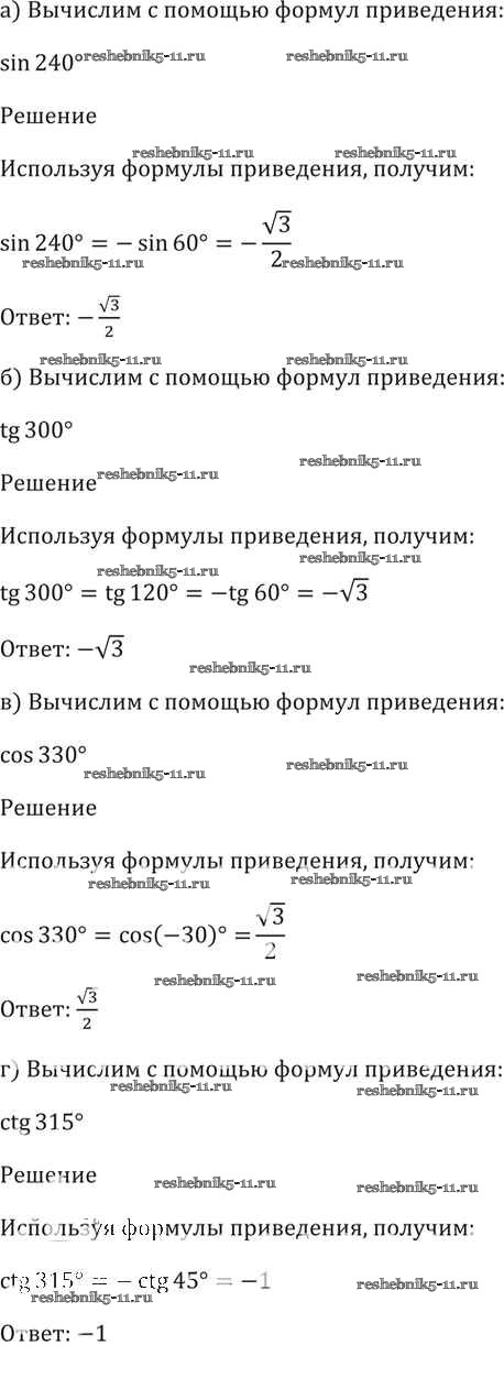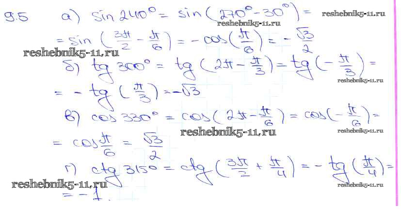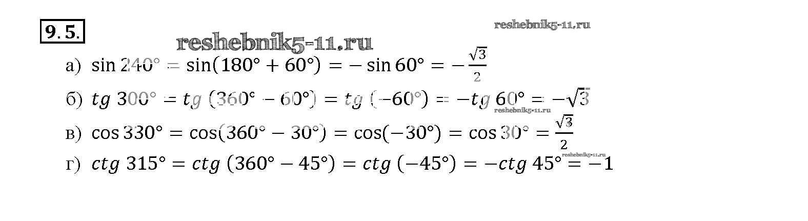 Готовая домашняя работа с ответами по Алгебре за 10, 11 класс Мордкович, Денищева, Корешкова, Мишустина, Семёнов, Тульчинская Задачник Базовый уровень Часть 2 Мнемозина 2015 ФГОС - §9. Формулы приведения 9. 5