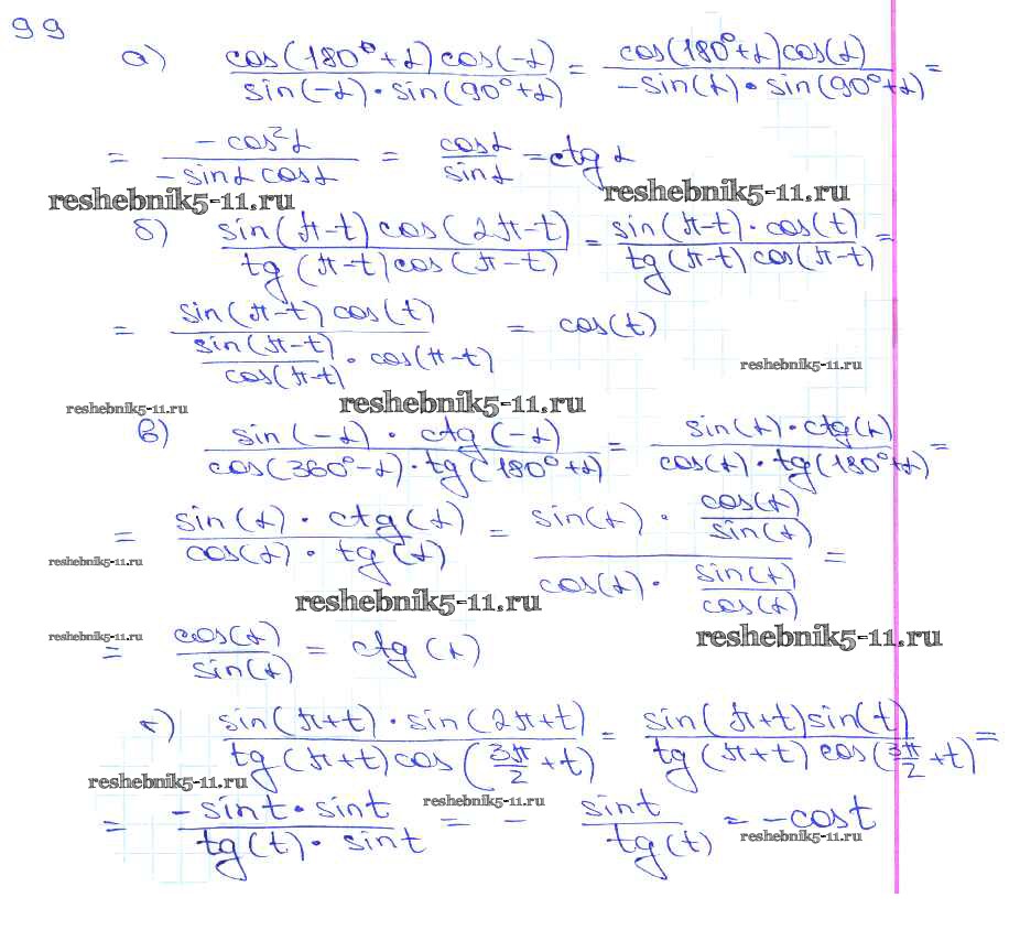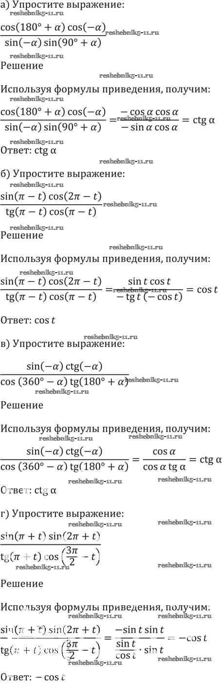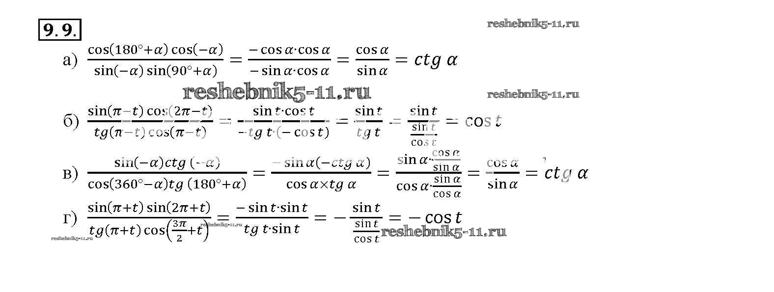 Готовая домашняя работа с ответами по Алгебре за 10, 11 класс Мордкович, Денищева, Корешкова, Мишустина, Семёнов, Тульчинская Задачник Базовый уровень Часть 2 Мнемозина 2015 ФГОС - §9. Формулы приведения 9. 9