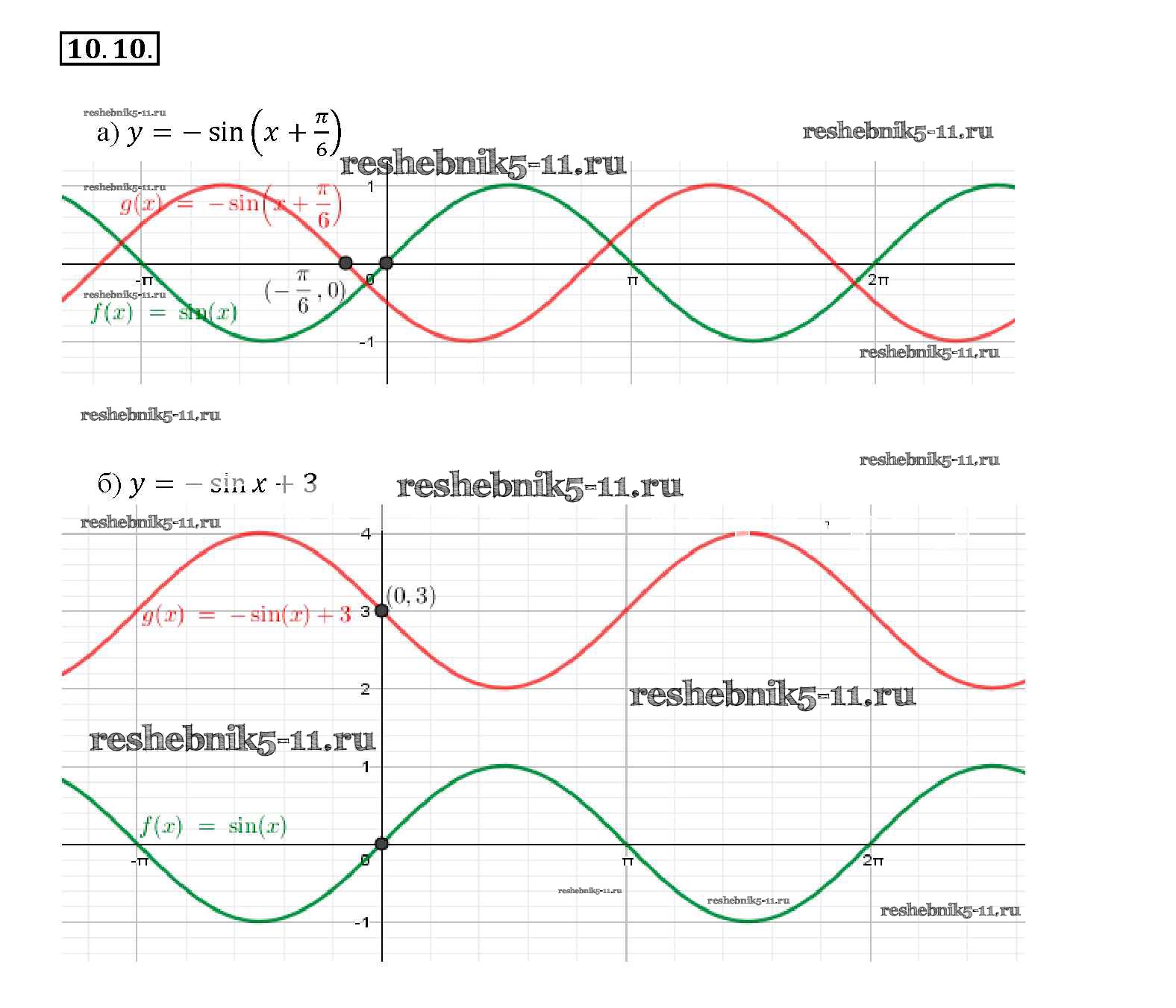 Готовая домашняя работа с ответами по Алгебре за 10, 11 класс Мордкович, Денищева, Корешкова, Мишустина, Семёнов, Тульчинская Задачник Базовый уровень Часть 2 Мнемозина 2015 ФГОС - §10. Функция y = sin x, ее свойства и график 10. 10