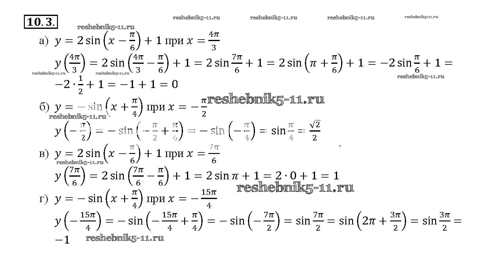 Готовая домашняя работа с ответами по Алгебре за 10, 11 класс Мордкович, Денищева, Корешкова, Мишустина, Семёнов, Тульчинская Задачник Базовый уровень Часть 2 Мнемозина 2015 ФГОС - §10. Функция y = sin x, ее свойства и график 10. 3