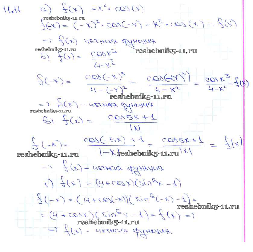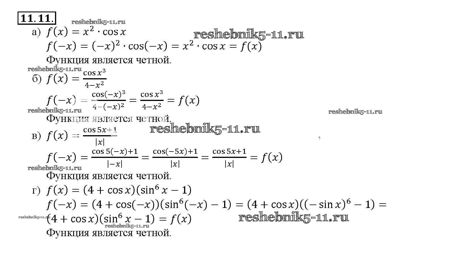 Готовая домашняя работа с ответами по Алгебре за 10, 11 класс Мордкович, Денищева, Корешкова, Мишустина, Семёнов, Тульчинская Задачник Базовый уровень Часть 2 Мнемозина 2015 ФГОС - §11. Функция y = cos x, ее свойства и график 11. 11