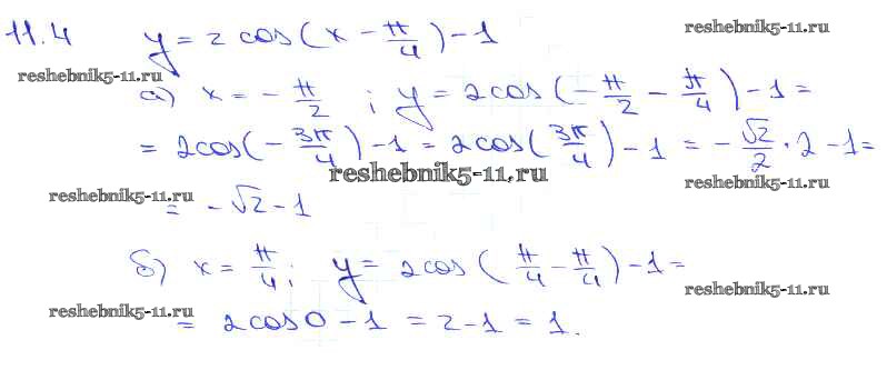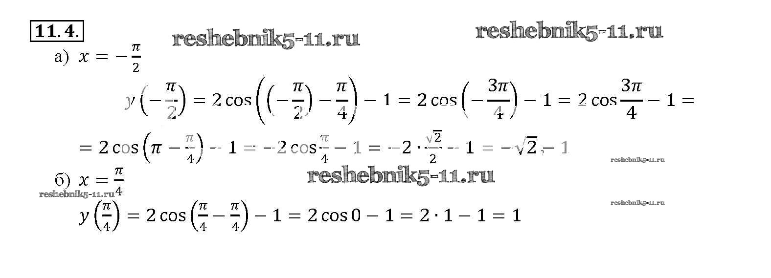Готовая домашняя работа с ответами по Алгебре за 10, 11 класс Мордкович, Денищева, Корешкова, Мишустина, Семёнов, Тульчинская Задачник Базовый уровень Часть 2 Мнемозина 2015 ФГОС - §11. Функция y = cos x, ее свойства и график 11. 4