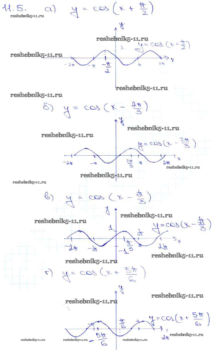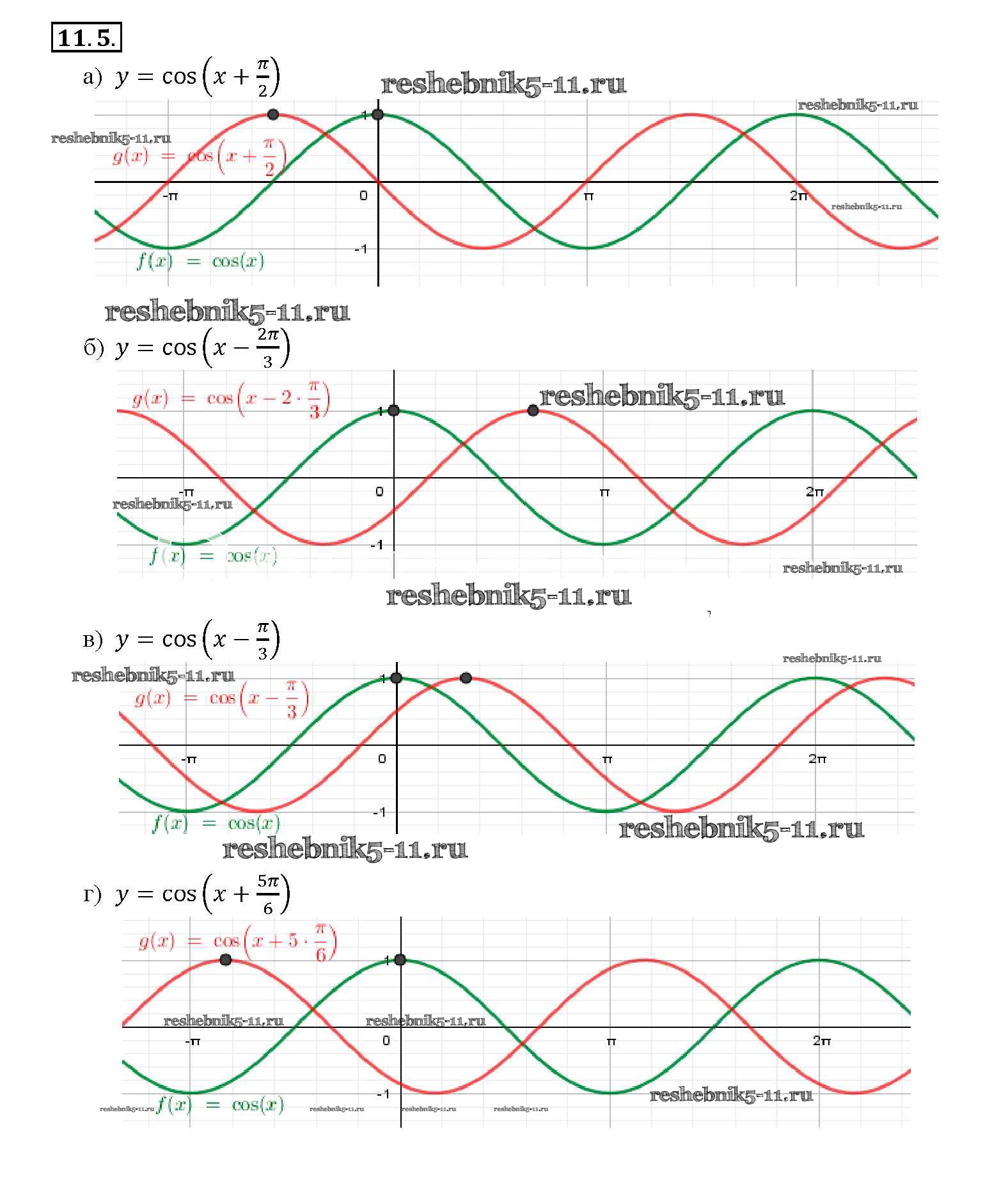 Готовая домашняя работа с ответами по Алгебре за 10, 11 класс Мордкович, Денищева, Корешкова, Мишустина, Семёнов, Тульчинская Задачник Базовый уровень Часть 2 Мнемозина 2015 ФГОС - §11. Функция y = cos x, ее свойства и график 11. 5