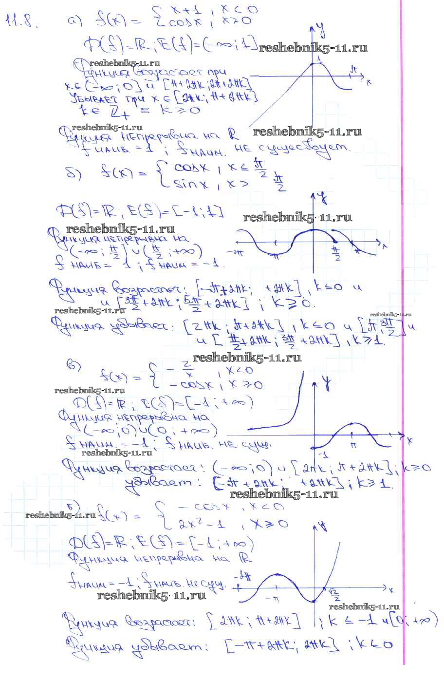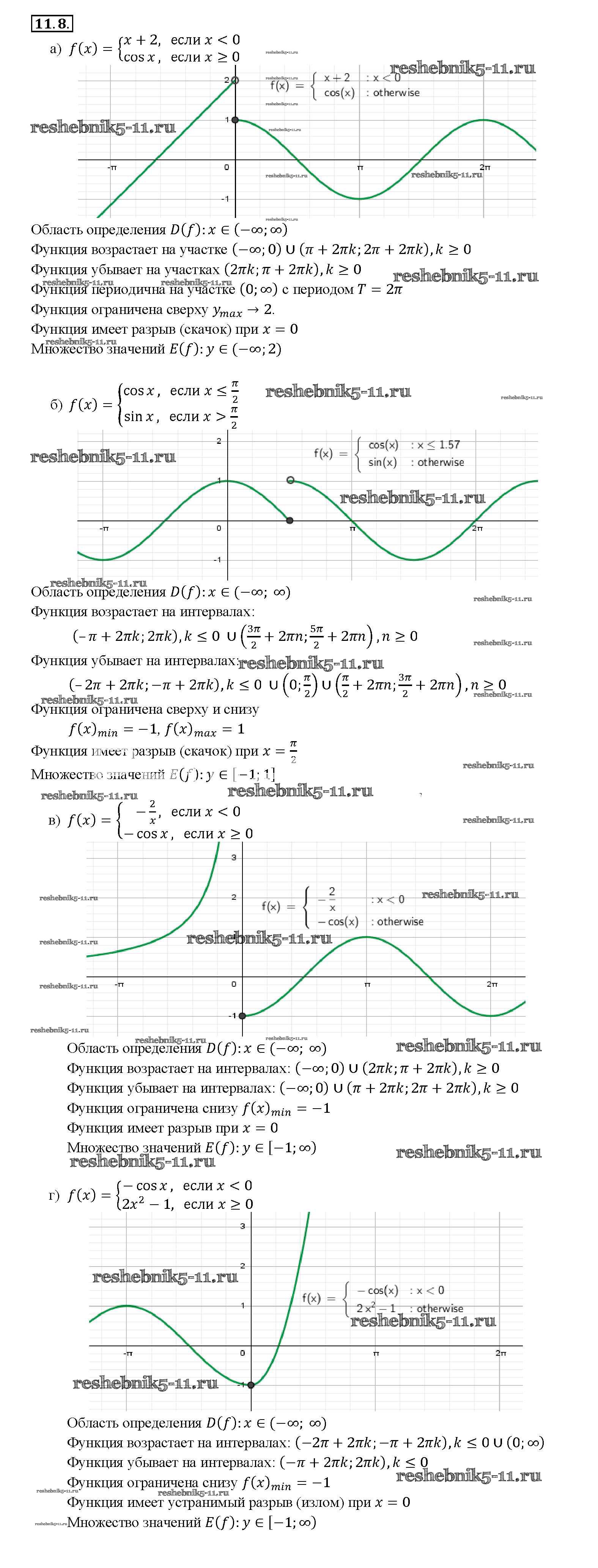 Готовая домашняя работа с ответами по Алгебре за 10, 11 класс Мордкович, Денищева, Корешкова, Мишустина, Семёнов, Тульчинская Задачник Базовый уровень Часть 2 Мнемозина 2015 ФГОС - §11. Функция y = cos x, ее свойства и график 11. 8
