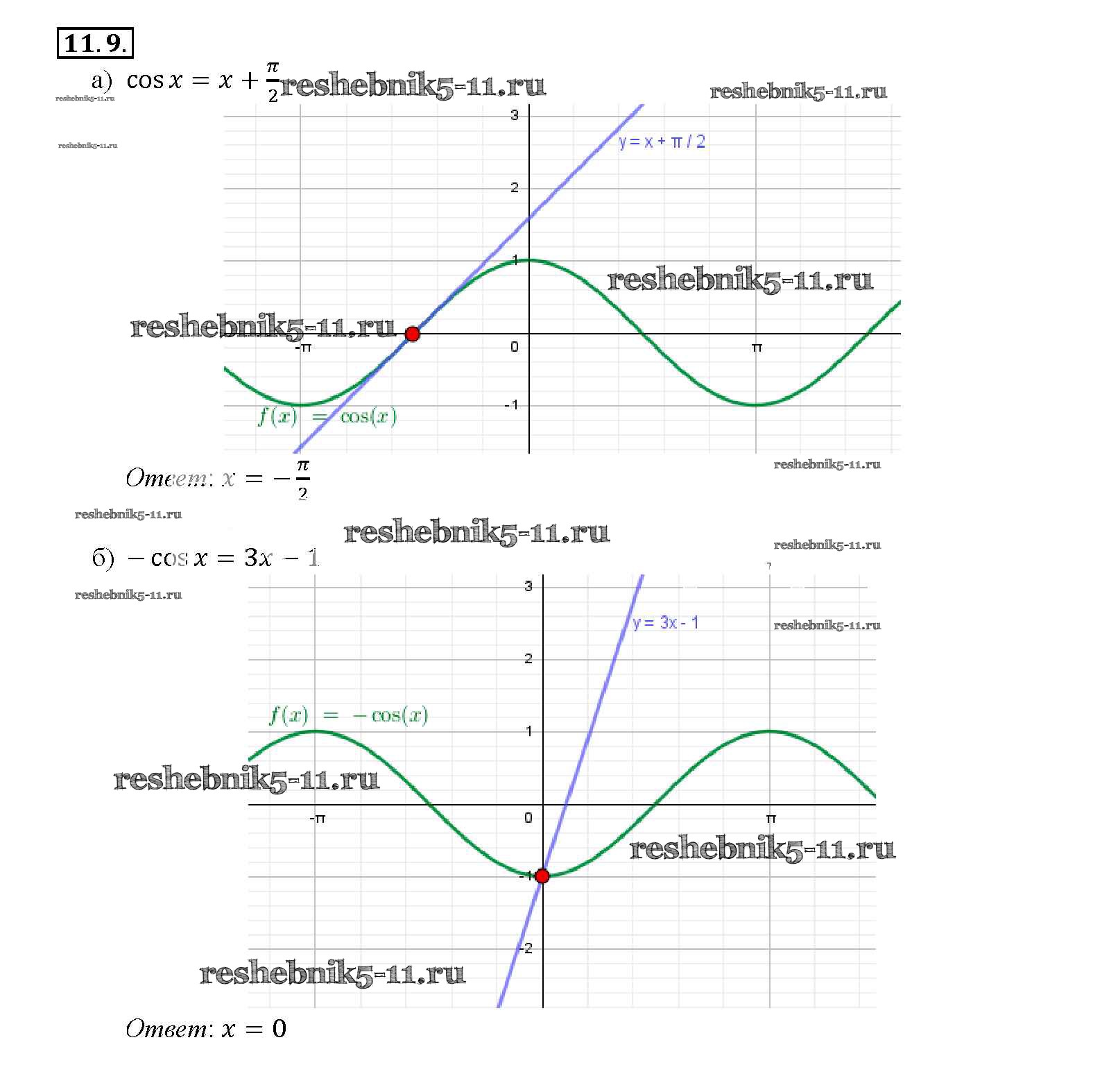 Готовая домашняя работа с ответами по Алгебре за 10, 11 класс Мордкович, Денищева, Корешкова, Мишустина, Семёнов, Тульчинская Задачник Базовый уровень Часть 2 Мнемозина 2015 ФГОС - §11. Функция y = cos x, ее свойства и график 11. 9