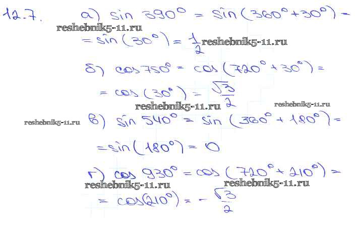 Готовая домашняя работа с ответами по Алгебре за 10, 11 класс Мордкович, Денищева, Корешкова, Мишустина, Семёнов, Тульчинская Задачник Базовый уровень Часть 2 Мнемозина 2015 ФГОС - §12. Периодичность функций y = sin x, y = cos x 12. 7