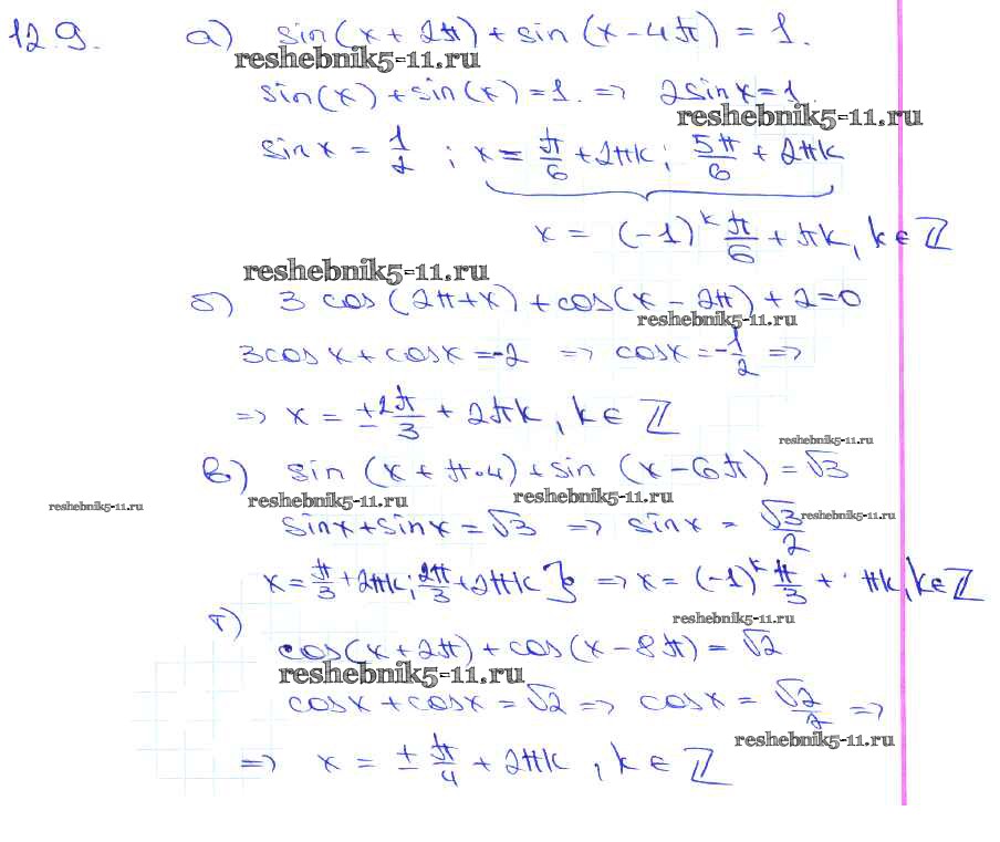 Готовая домашняя работа с ответами по Алгебре за 10, 11 класс Мордкович, Денищева, Корешкова, Мишустина, Семёнов, Тульчинская Задачник Базовый уровень Часть 2 Мнемозина 2015 ФГОС - §12. Периодичность функций y = sin x, y = cos x 12. 9