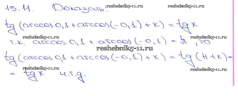 Готовая домашняя работа с ответами по Алгебре за 10, 11 класс Мордкович, Денищева, Корешкова, Мишустина, Семёнов, Тульчинская Задачник Базовый уровень Часть 2 Мнемозина 2015 ФГОС - §15. Арккосинус. Решение уравнения cos t = a 15. 11